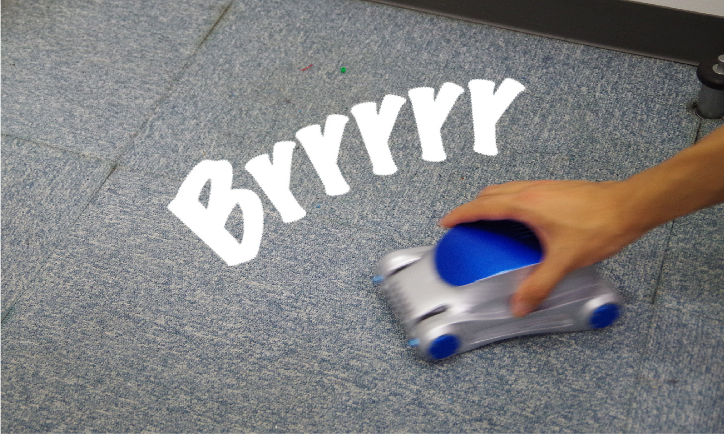 幼いながら、エンジン音などを擬声しながら遊んでいたことでしょう。私たちはこの頃の心境を本物の「のりもの」への”憧れ”なのではないかと捉えました。Uveeはそんな子供の”憧れ”へと近づけてくれるおもちゃです。Uveeを手で前に進めると加速音が、ドリフトさせるとドリフトの音、飛行、衝突etc..