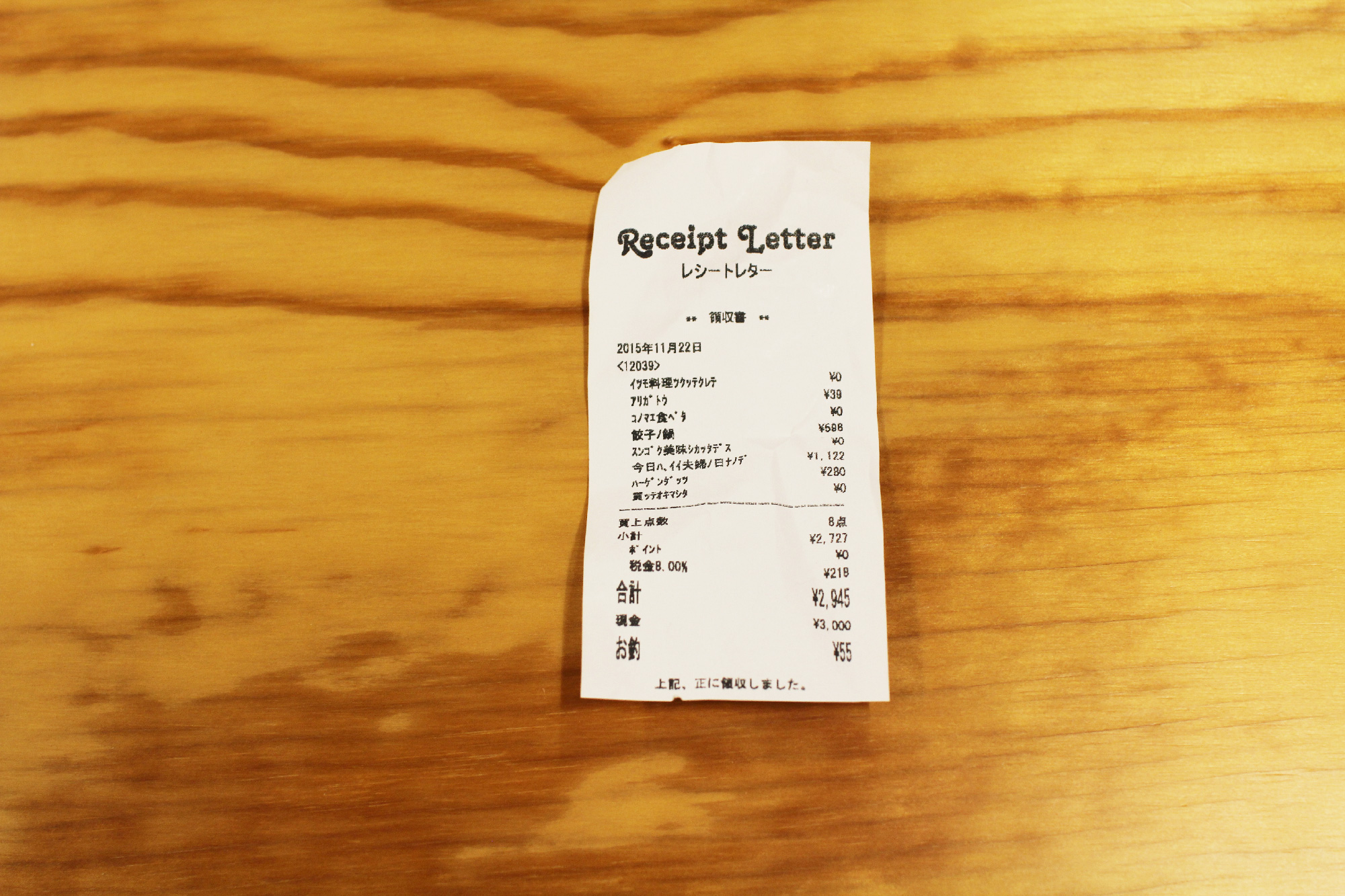 レシートの商品名のところを、メッセージに変えた「レシートのふりをした手紙」です。