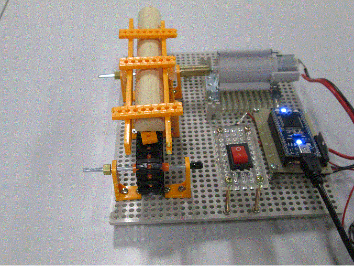 この作品は、日常のちょっとしたことを電子工作にすることで楽しくしようというコンセプトで作ったものです。 今回使用したものは駄菓子のうまい棒を使用させていただきました。 子どものころに誰もが一度は食べたことのあるうまい棒。これを食べる時食べにくさを感じたことがあるはずです。 こんな時に思いついたのがこの作品です。モーターでキャタピラを回し、そのキャタピラで棒を押し出す。これだけの簡単な構造でうまい棒を食べやすくすることに成功しました。