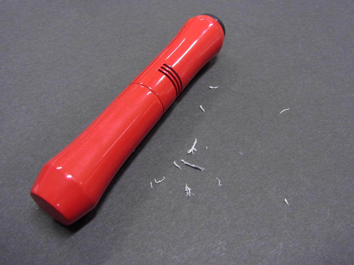ペンサイズの超小型掃除機です。 授業中に出た消しゴムのカスや、造形中に出た削りカスなど いつでもどこでも使える小型の掃除機、”家電と文房具の融合”をコンセプトに開発しました。 デザインにもこだわり、口紅のようなその形状から”Rouge”と名づけました。