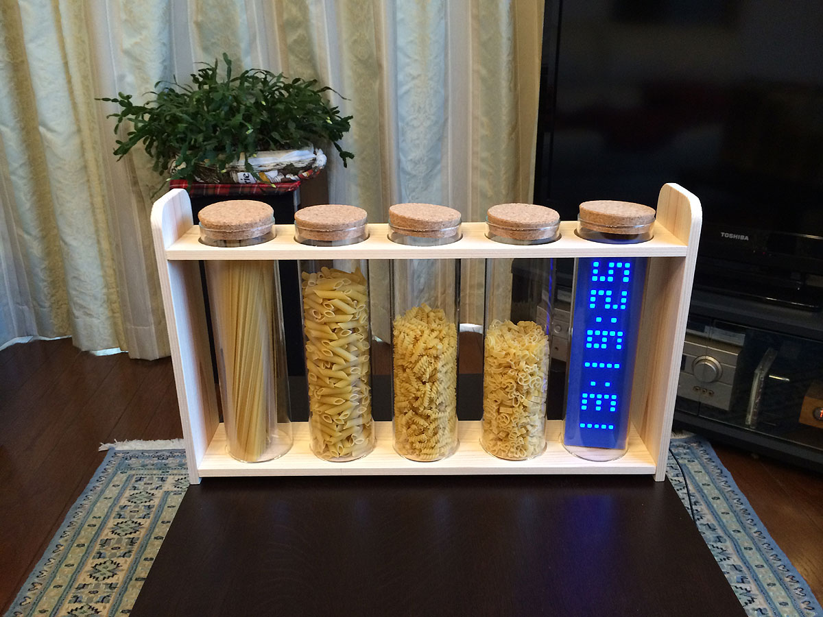 ■試験管スパイスラック時計をパスタキャニスターに収めてみました。ジョークです(笑)