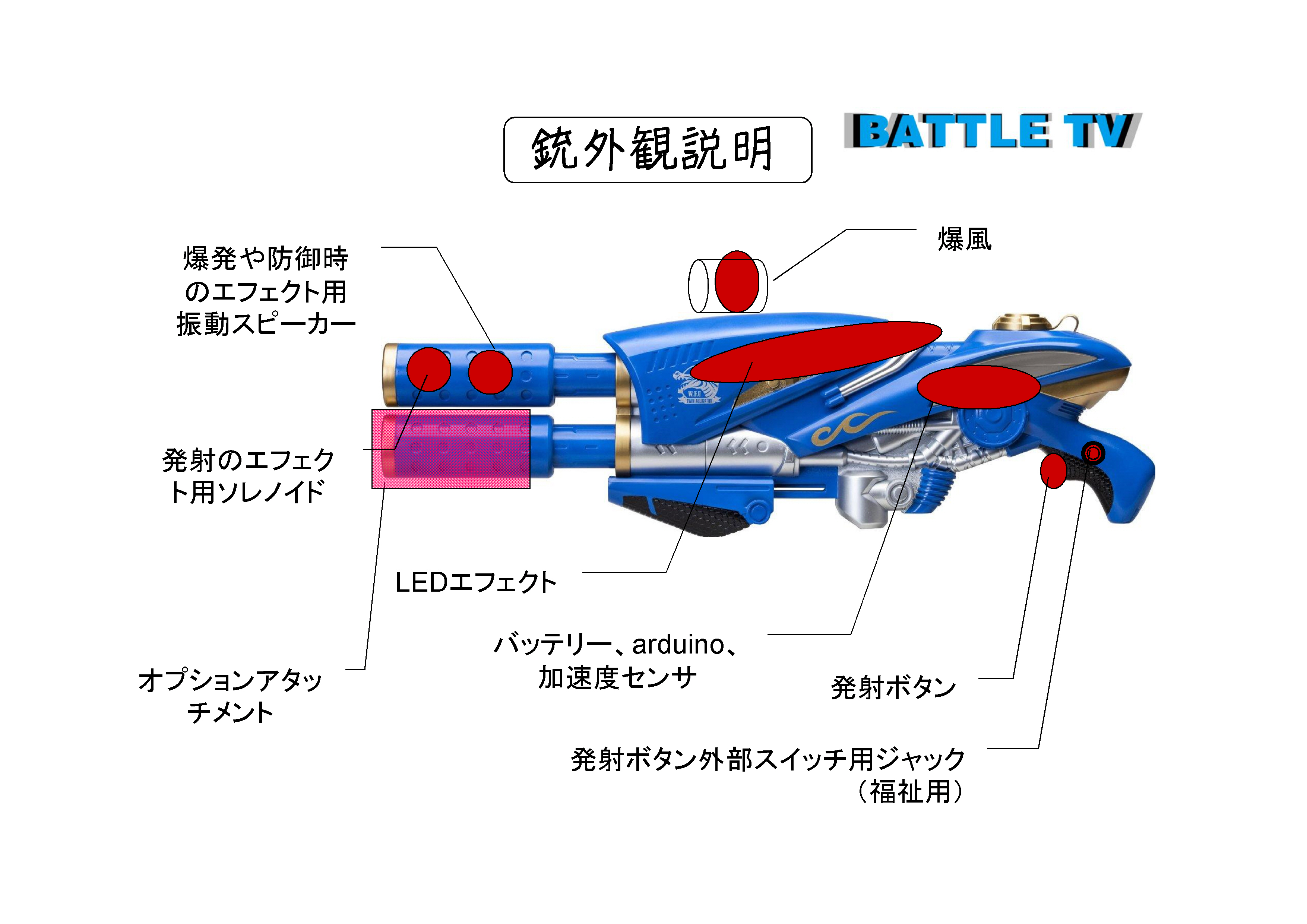 銃には衝撃ソレノイドや振動スピーカを装備射撃反動や敵銃撃を再現します。