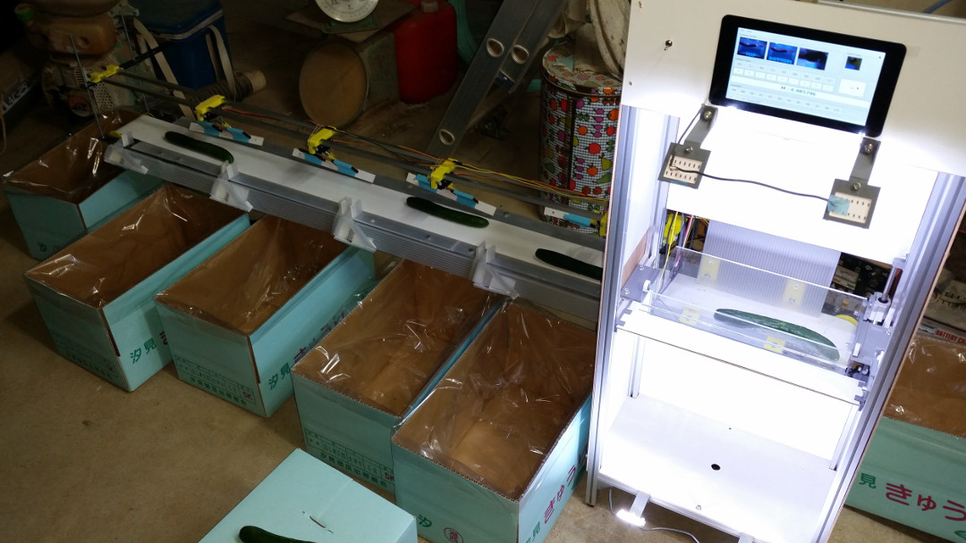 今回作った装置は、Webカメラを使い撮影したきゅうり画像を、畳込みニューラルネットワークを使って等級別に判別できるようにしました。