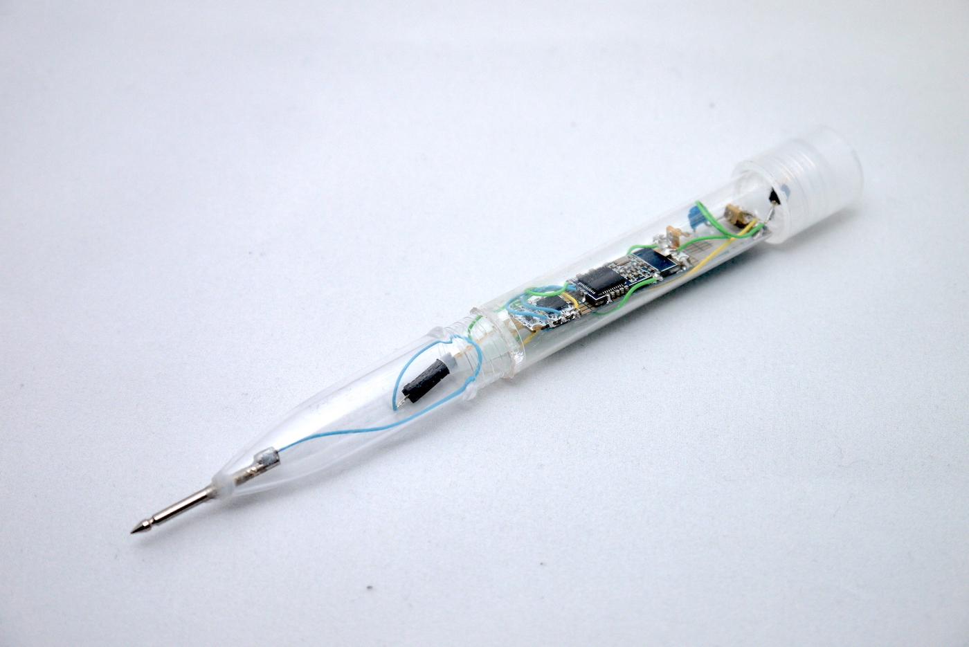 従来のオシロスコープと比べて,液晶画面をスマートフォンに委譲し小型化することで,1本のペンになりました.