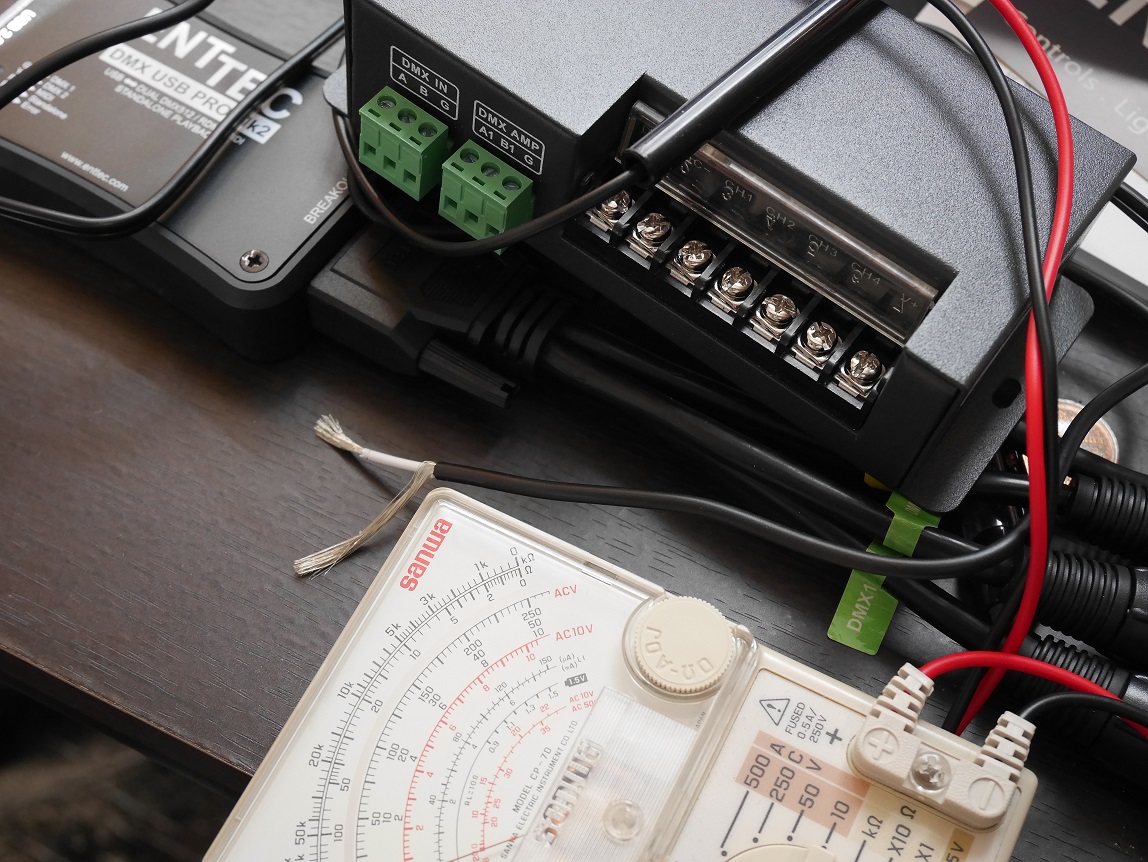 タイトルの「Rina meets Night Fantasy」は、長女の律夏が、ある夜、今回作成したアプリケーションを非常に楽しんでくれたので、様子をストレートに伝えたいと思って付けました。創作の具体的箇所としては、空間演出を行うための、ハードウェアとソフトウェア間の連携に係るソフトウェア開発と、ハードウェアをDMX通信プロトコルで制御するための電気配線部分の作成です。これらのネットワークの制御は、個々は簡易的なものですが、デバイスを組合わせることで、インタラクティブな体験空間を創ることができました。