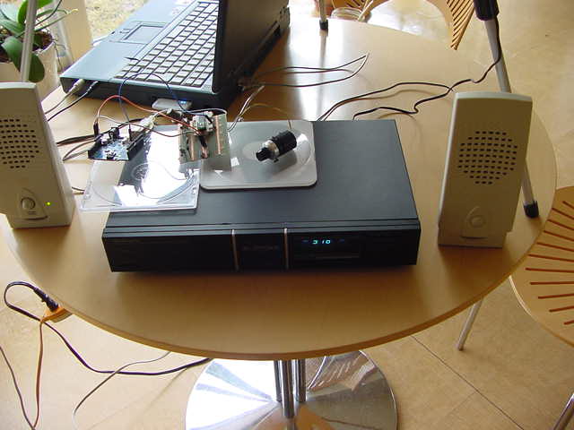 ハードウェアを説明します。 チューナーから、信号を取り出します。 ノートパソコンのマイク入力に接続します。 arduinoは、発振器の周波数モニタと5Vを供給しています。 発信器は、455khzにポテンショメータで固定します。