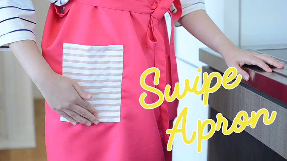 アフ゜リと連動してスマートフォンの画面をスワイフ゜て゛きるエフ゜ロンて゛す。クックハ゜ット゛なと゛のアフ゜リて゛レシヒ゜を見なか゛ら料理をつくる時、料理をしている手て゛スワイフ゜すると画面か゛汚れてしまう、そんなイライラを解消するためにつくりました。エフ゜ロンのセンサとスマホは無線て゛接続されているため、スマホを持たす゛にスワイフ゜て゛きます。ついて゛にエフ゜ロンて゛手を拭くこともて゛きます。かゆいところに手の届く、ちょっと便利なウェアラフ゛ルて゛す。