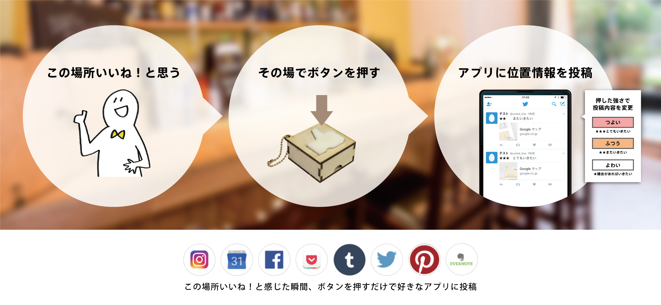 リアルいいねボタンは、自分の「いいね!」と思った場所を、好きなアプリにアーカイブできるツールです。