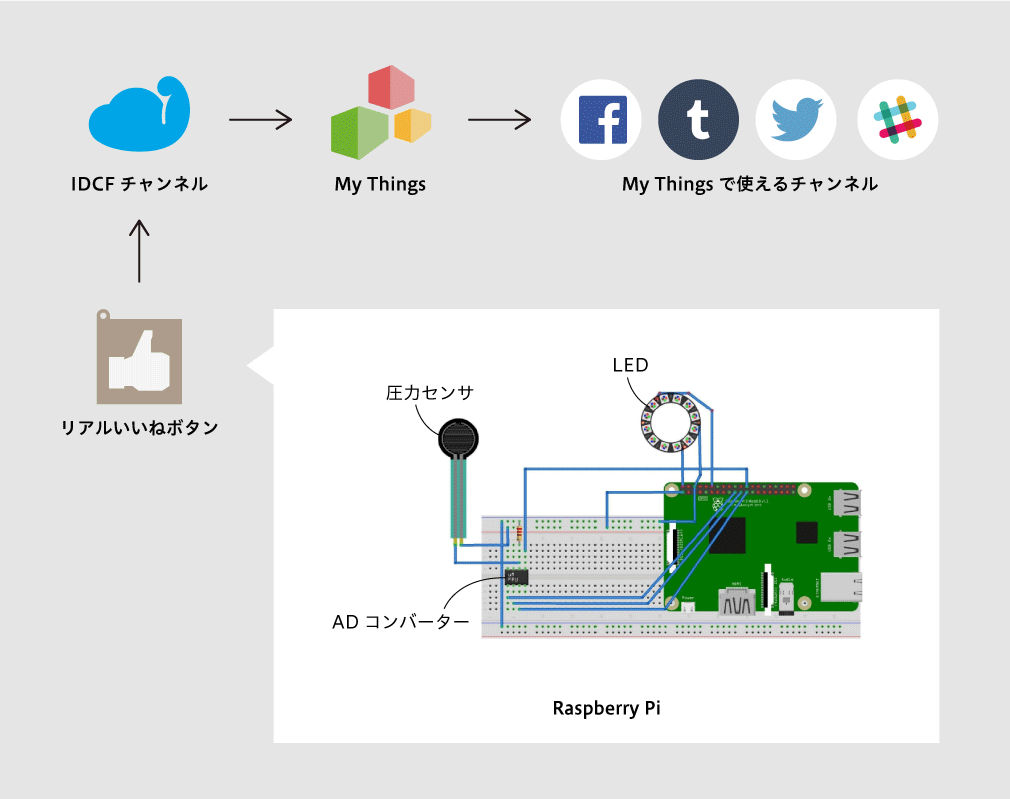 リアルいいねボタンの実装は、Raspberry Piを使っています。