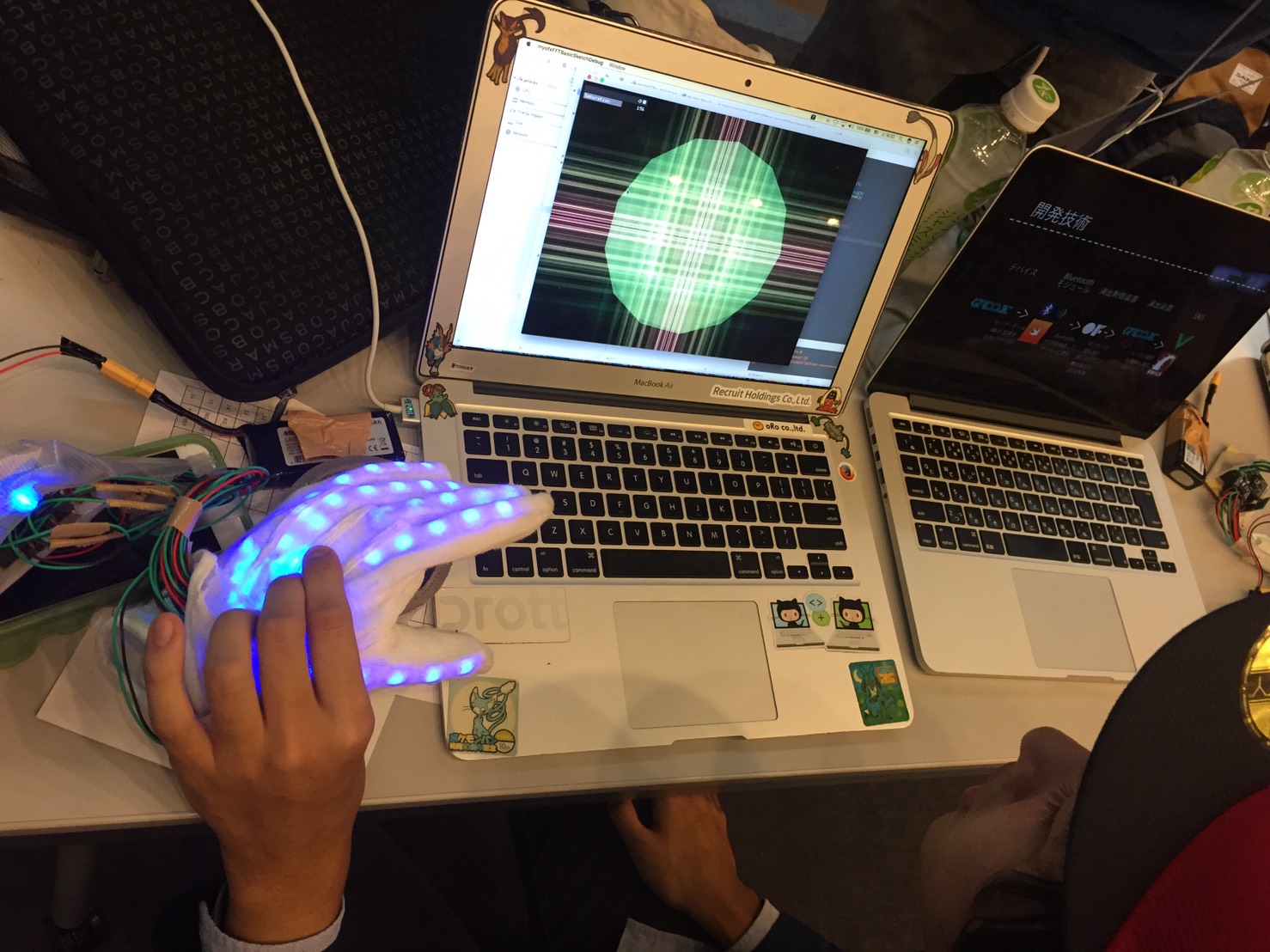 は, 他者との事前打ち合わせや, プログラミングを通して行われている. さらに演者である自身は演出装置の制御が困難であり, 演出を通して自身を表現する場合には, 演出装置の制御をスタッフに委託する必要がある.そのため, スタッフを雇えないアマチュアダンサー・ストリートダンサーにとって, ダンスバトルのような即興アドリブのダンスでは自身の表現力を最大限に活かせない. そのような課題意識の元で, ダンサーが自身の演出を制御でき, 観衆を盛り上げることができるデバイスの開発を行った.