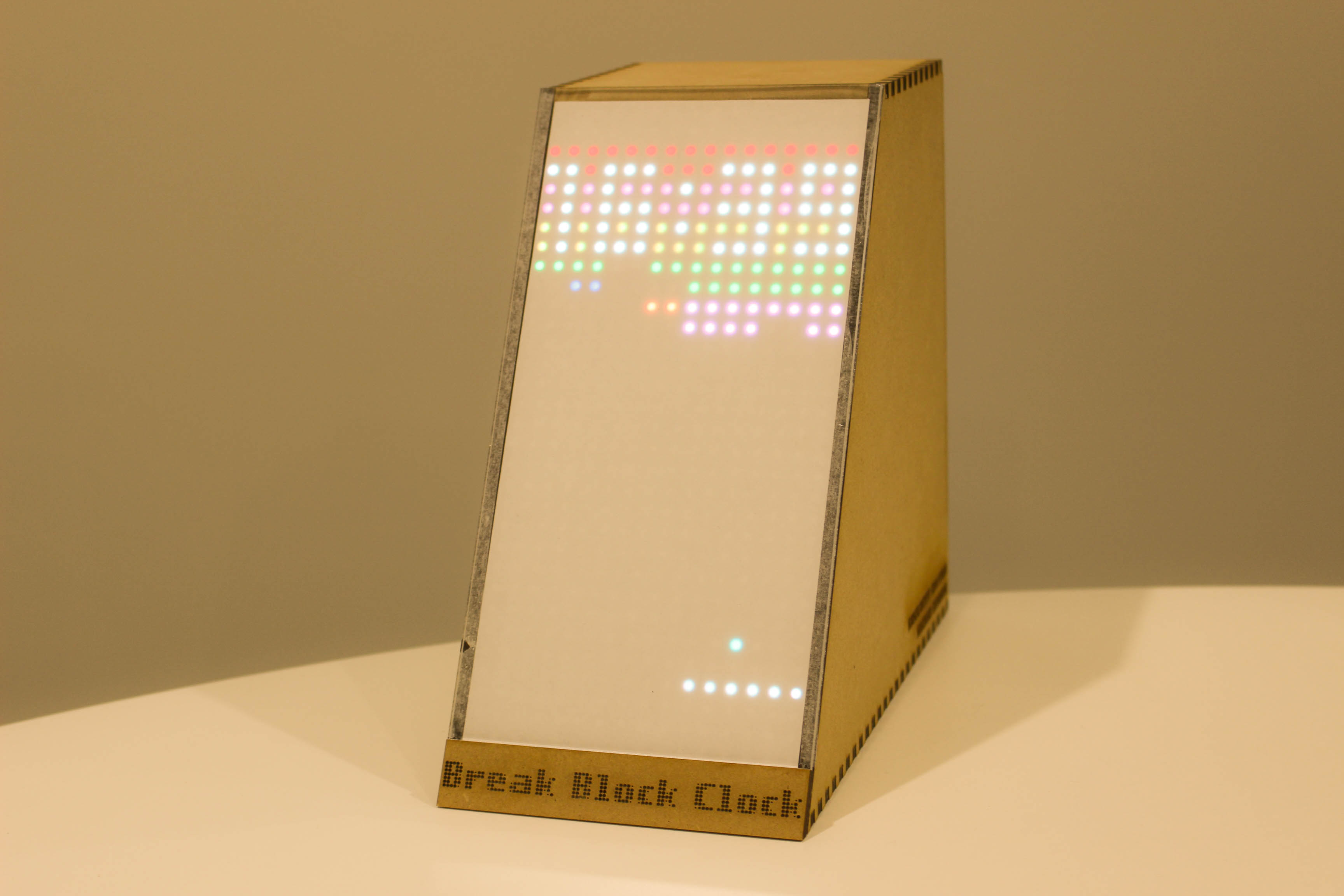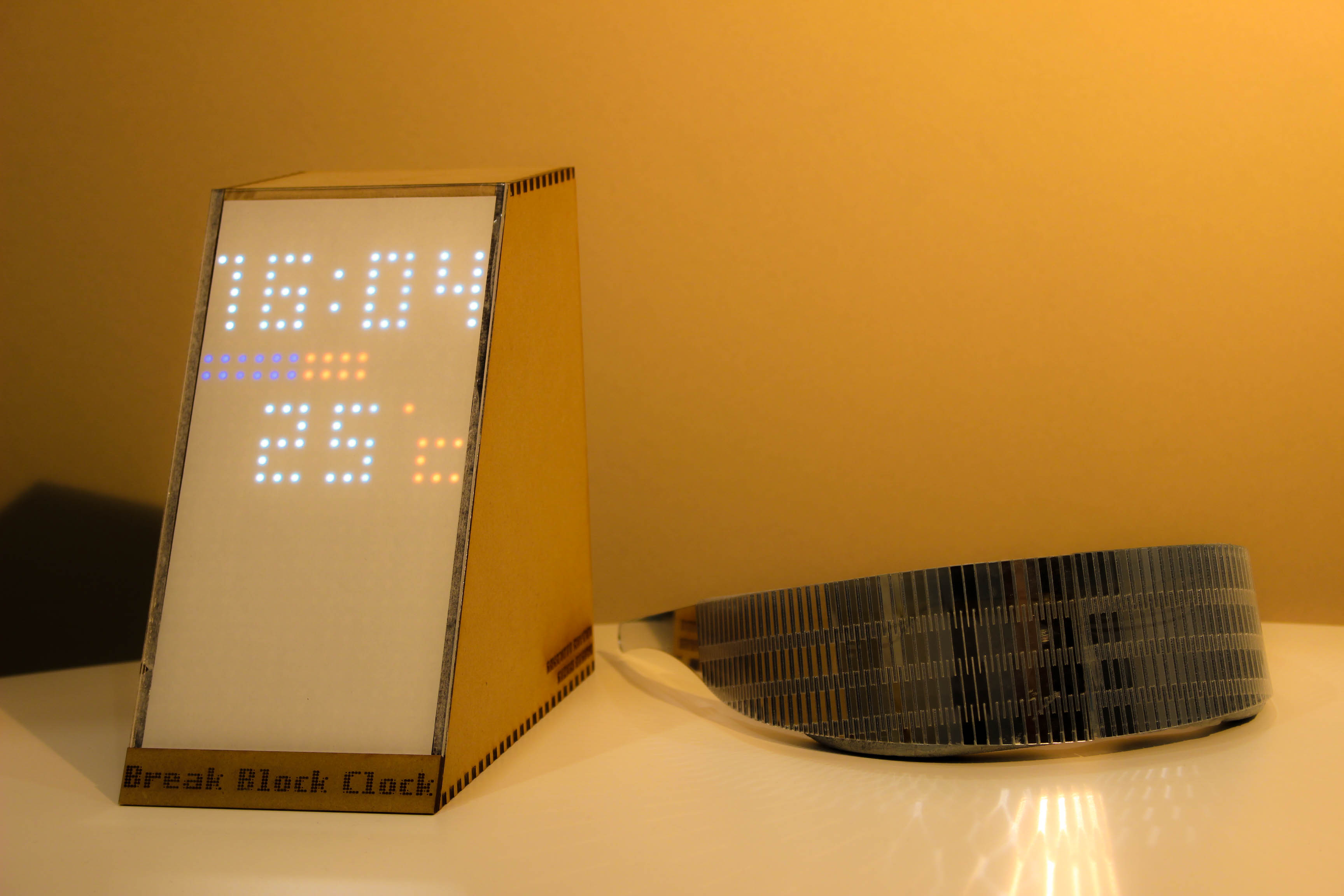 「手を使わないで遊べるスタイリッシュなメガネ」をコンセプトに作成した、Arduinoを用いたメガネと置き時計です。普段は温度計付き時計としてインテリアに利用できますが、メガネを頭に装着すると、途端にブロック崩しに変わります。ブロック崩しは、頭の傾きによりラケットを操作して遊ぶことができます。首を俊敏に動かし、アイテムを駆使してゲームクリアを目指しましょう。
