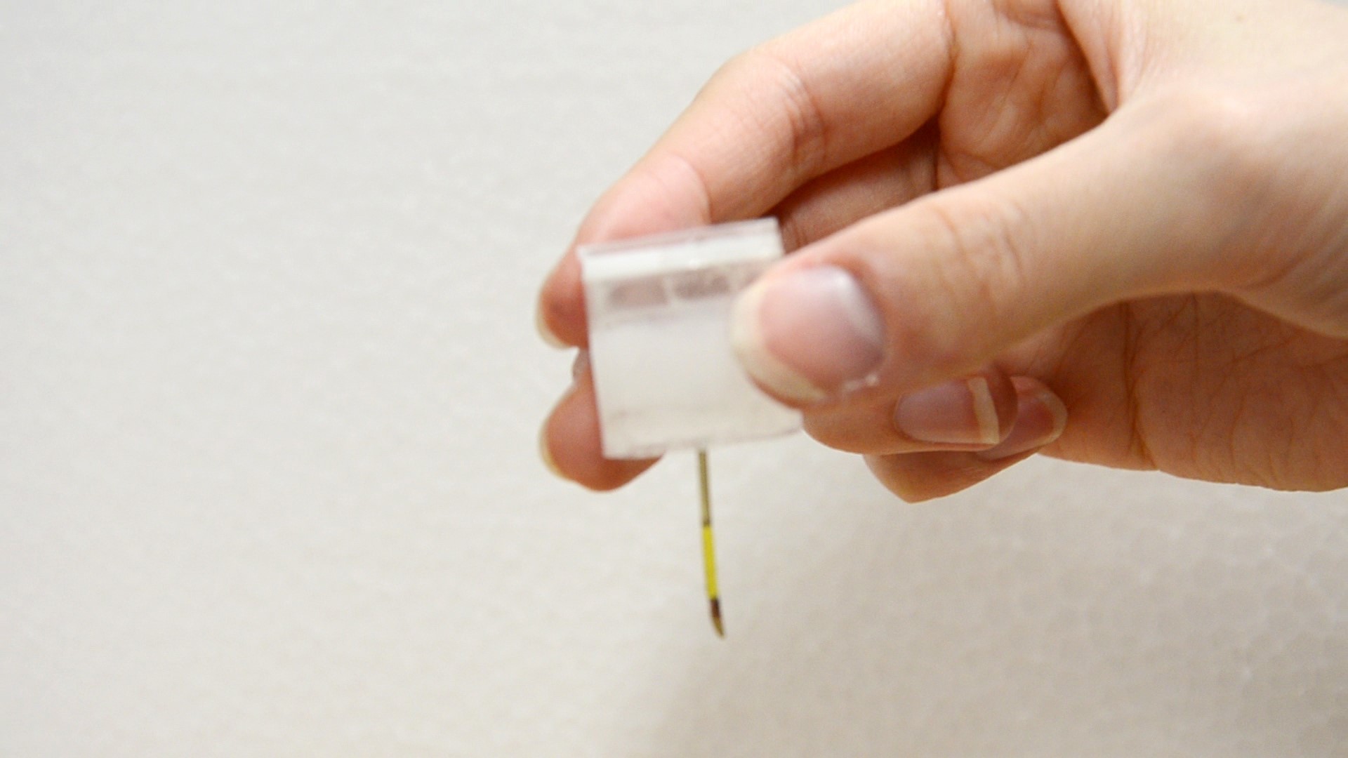 ピンをよく見てみると、針の色が分かれています。真ん中が絶縁筒で、この部分を境に上がプラス、下がマイナスに分かれ、ピンの上部にあるLEDやMP3プレイヤ?に通じています。