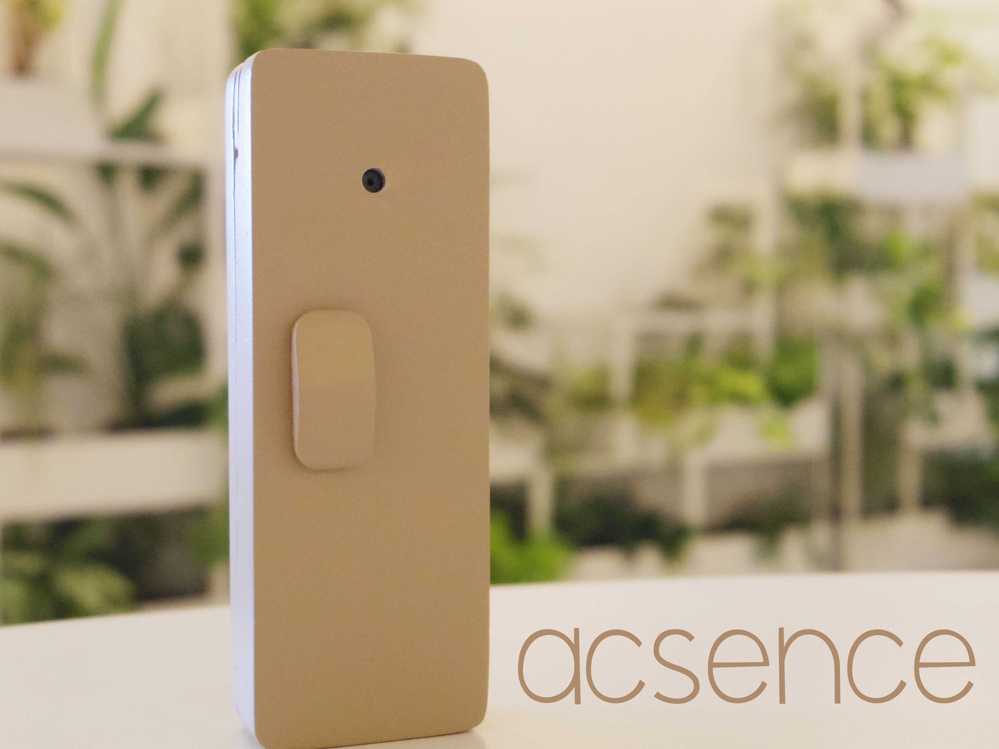 『acsence』は香りのON/OFFや日常のシーンに合わせた香りの変更ができる、新しい香水の使い方を提供するデバイスです。