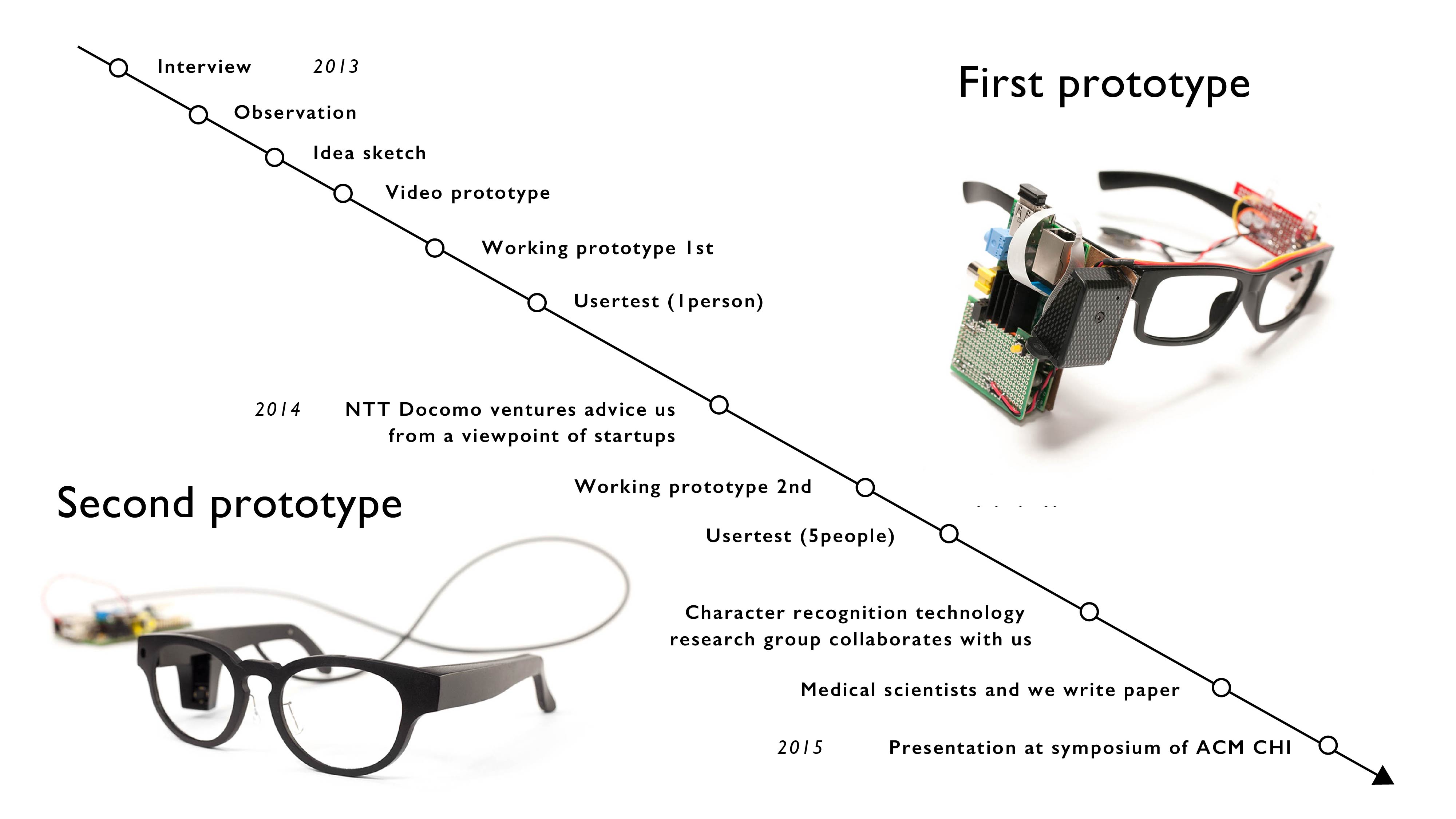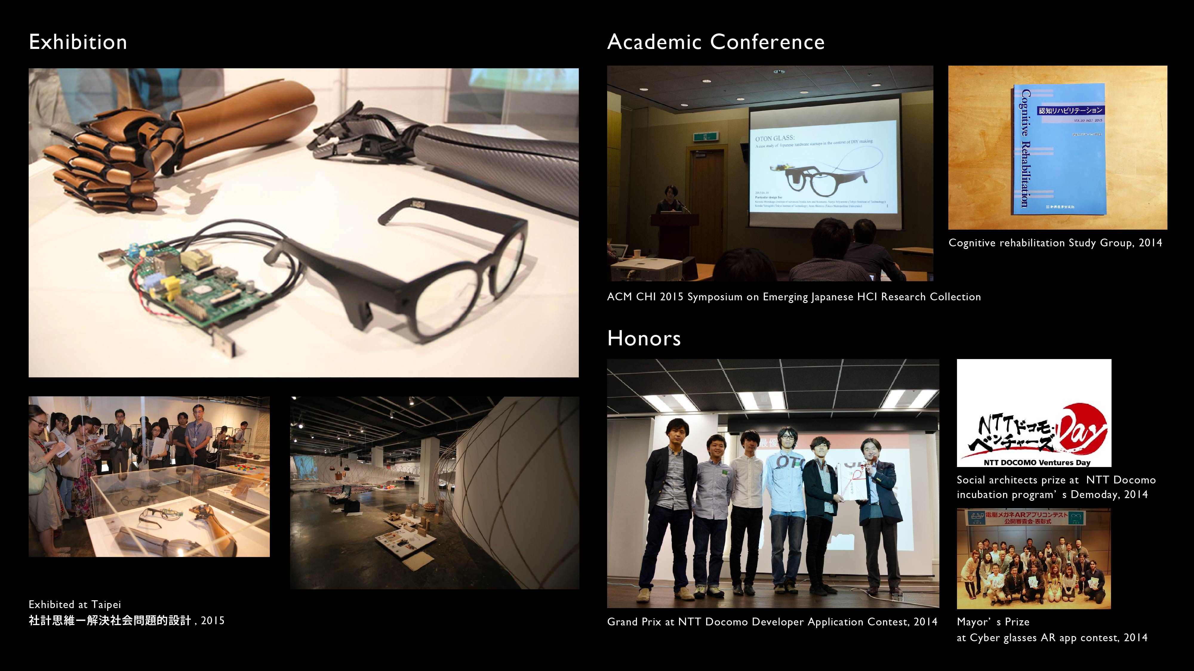 メイカームーブメントは、今まで分業化されていた人々を繋ぎ直し、草の根的なものづくりを可能にしている。ものづくりへの強い情熱があれば、誰かが作るのを待つのではなく、自ら作ることが可能である。『OTON GLASS』は文字を読むことが困難なディスレクシア(読字障がい者)や弱視者を対象とした、「読む行為」をサポートするスマートグラスである。通常の眼鏡と変わらない装着感を持つウェアラブルなデバイスであり、ユーザーは視線と同位置にあるカメラで読みたい文字を撮影し、撮影画像中の文章を文字認識によって読み上げた音声を聞くことで、内容を理解することができる。開発の動機は私の父の失読症だった。2012年に父が脳梗塞を発症して言語野に障害が残り、文字を読む能力だけが低下した出来事をきっかけに「読む行為」をサポートするデバイスの開発を決意した。SNSの活用により集まったエンジニア、デザイナー、研究者など様々な技術や経験を持つメンバーのボランタリーな参加による、柔軟かつ拡張性に富んだ開発環境と、3Dプリンター、Raspberry Pi、各種APIなどのオープンソース技術を用いた、安価かつ迅速なプロトタイピングの融合によって、新たなものづくりの可能性を切り開いている。父のリハビリによる完治以降も、ディスレクシアや弱視者へのよりよいサポートとなるべく、現在も実用化に向け開発を進めている。