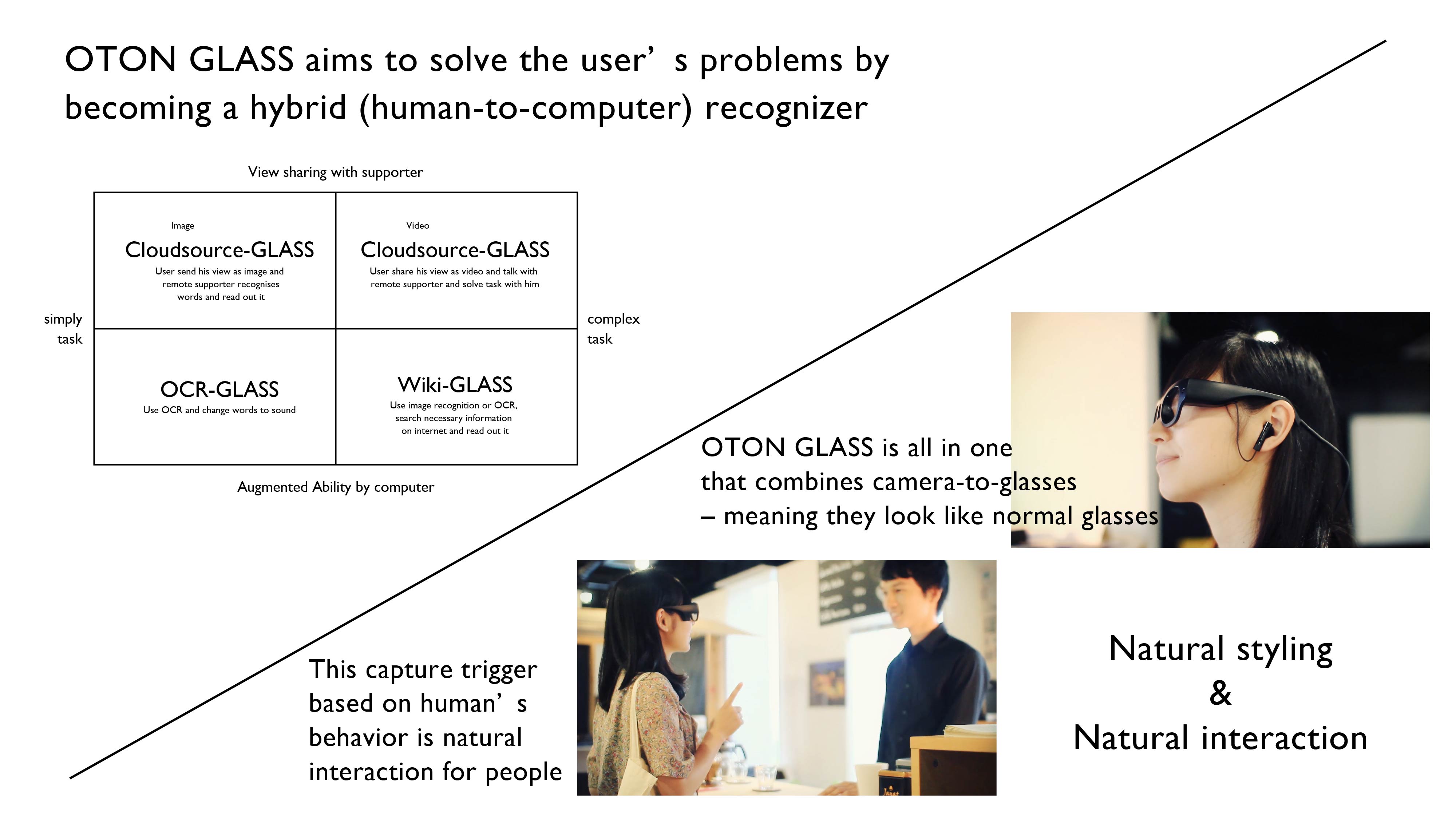 続きを読む→先天的に文字が読みづらいディスレクシアの方や、日本語が分からない日本在住の海外の方、眼鏡をかけても視力が上がらない弱視の方と出会い、その方たちにOTON GLASSを届けることを目標にしている。