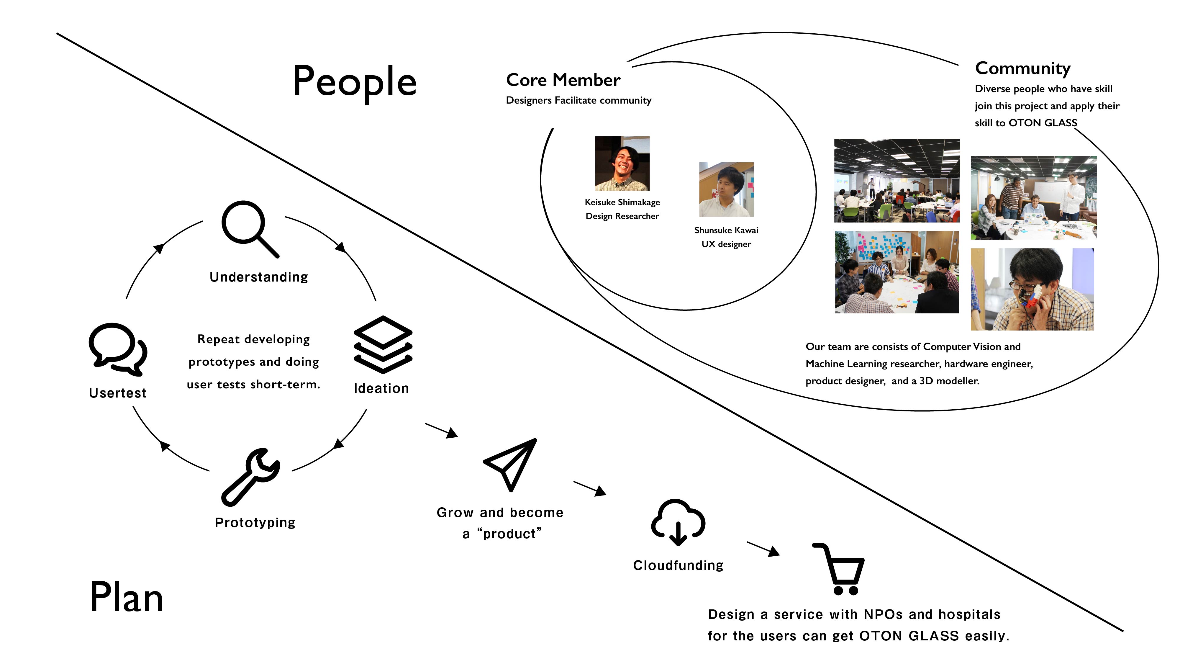 OTON GLASSは開かれたものづくりのコミュニティとして多様な専門性を持った人々が参加しています。SNS経由を中心に約20名の方が集まり、現在進行形でそれぞれの技術を生かしてプロトタイプを制作しています。一緒にOTON GLASSをつくってくださる方を絶賛募集中です!