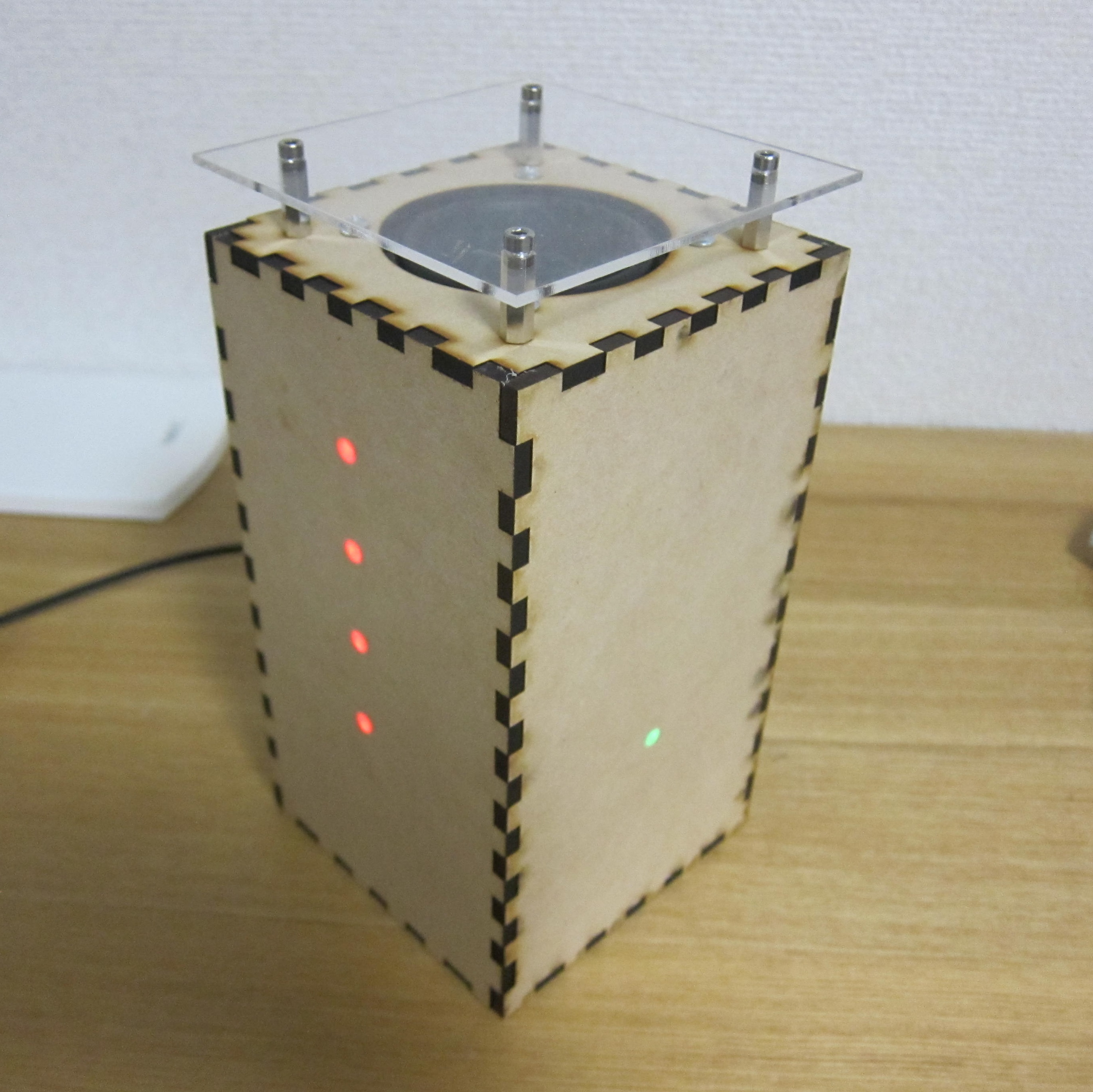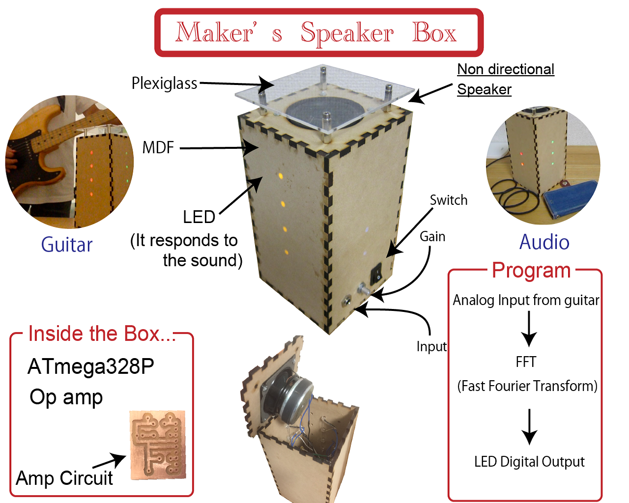 このプロダクトは、音に応じてLEDがイルミネーションを彩るギターアンプです。