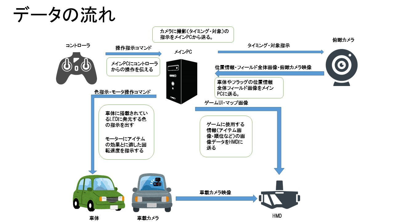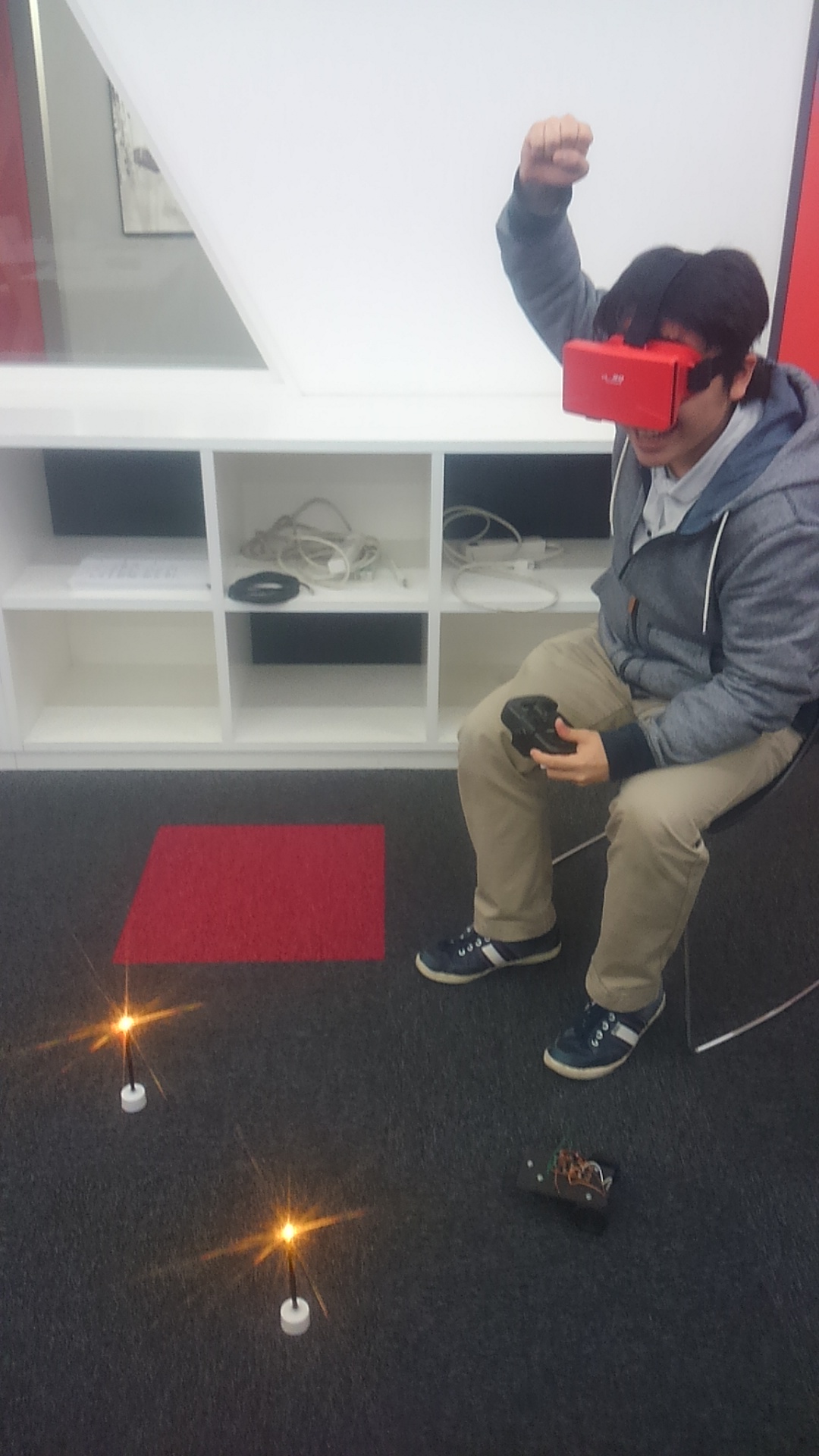 HMDにラジコンの視点を映すことで臨場感たっぷりのゲームを楽しめます。
