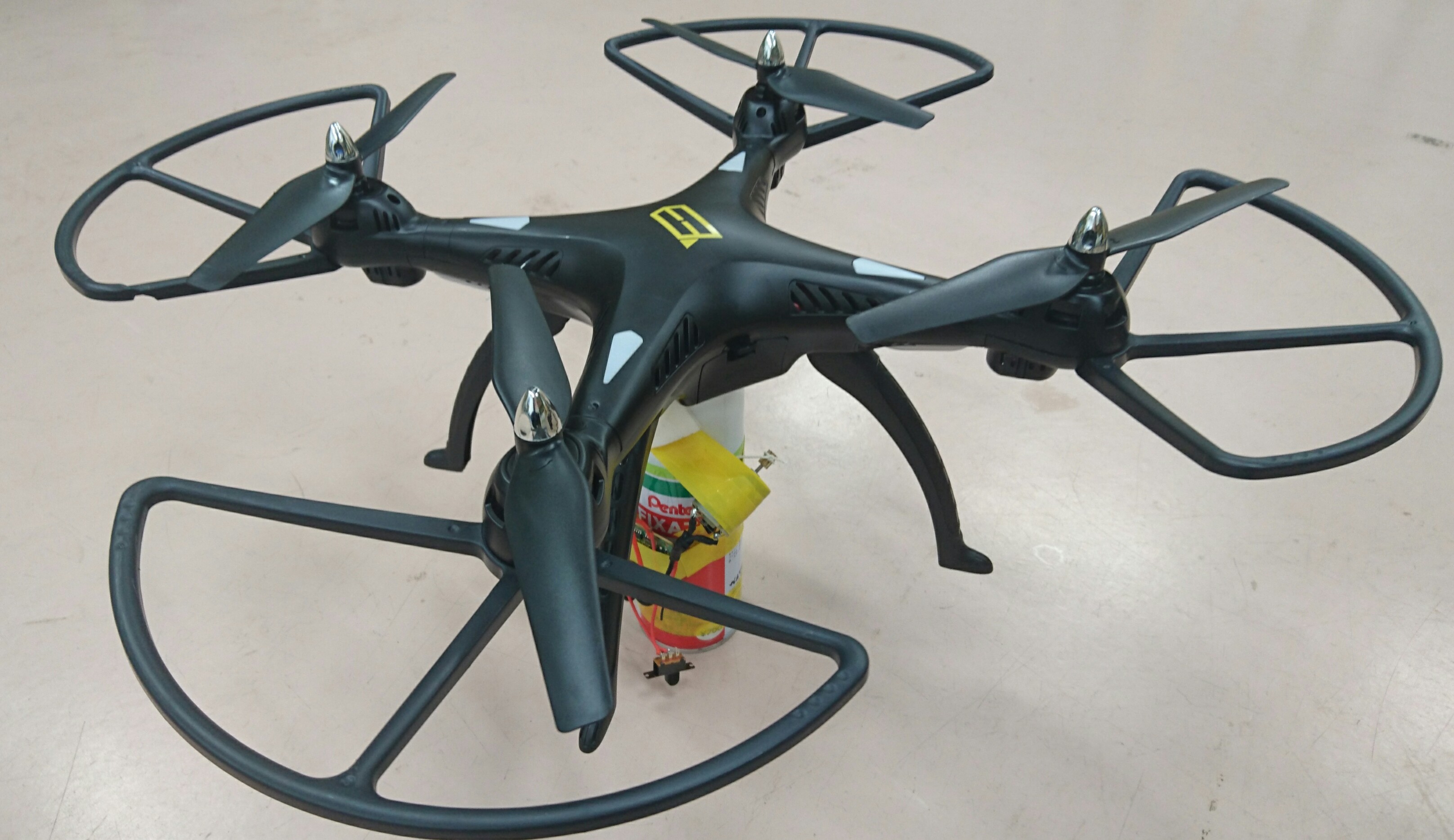 遠隔操作によって蜂の巣を駆除することを目的としたドローンです。