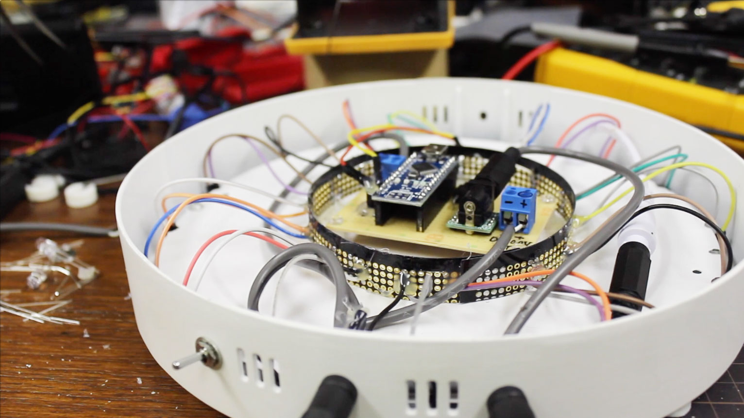 デルタフロアユニットは内蔵されたArduino Nanoによって制御され、120Hz(秒間120回)の周期でフロアLEDを高速点滅させます。