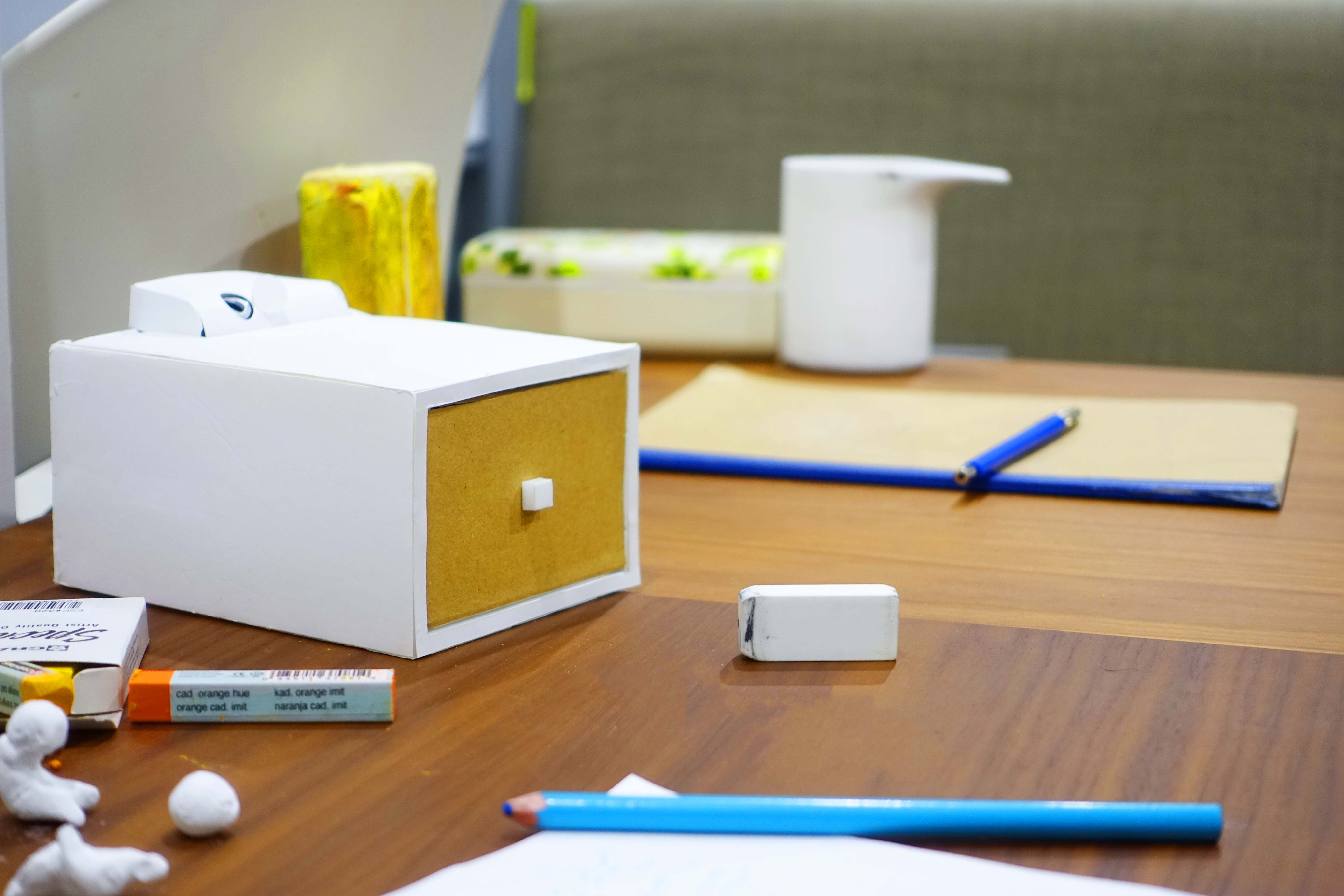hakkonは人の目を盗んでいたずらをする、うっとうしいい、でもどこかキュートで憎めない箱です。人が自分に視線を向けていないのを付属のカメラから顔認証で確認し、引き出しを飛び出させます。飛び出し方はゆっくりなものから早いものまであり、持ち主にバレないようにこっそり動くものと反抗的で激しく動くものです。