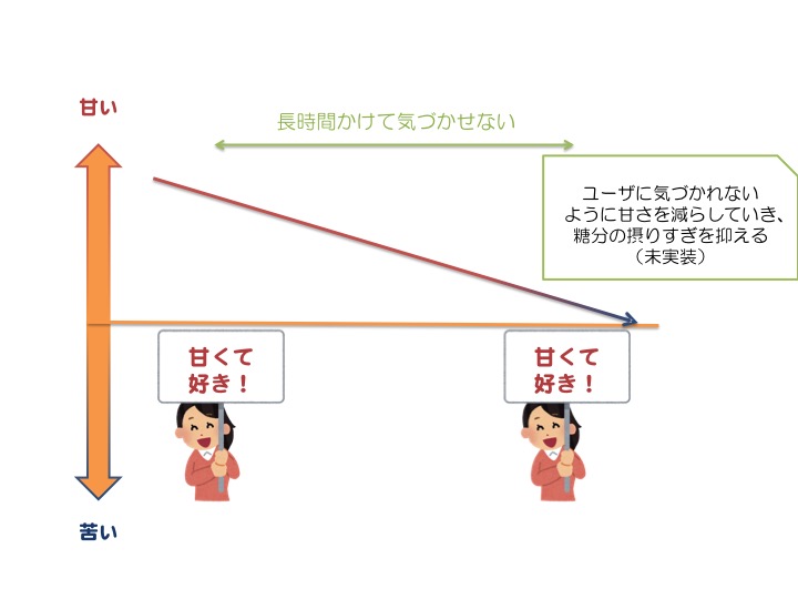 ・最初だけ甘さやアルコール度数が高くて、だんだん気づかないように低くなるようにすることで摂りすぎを防止する