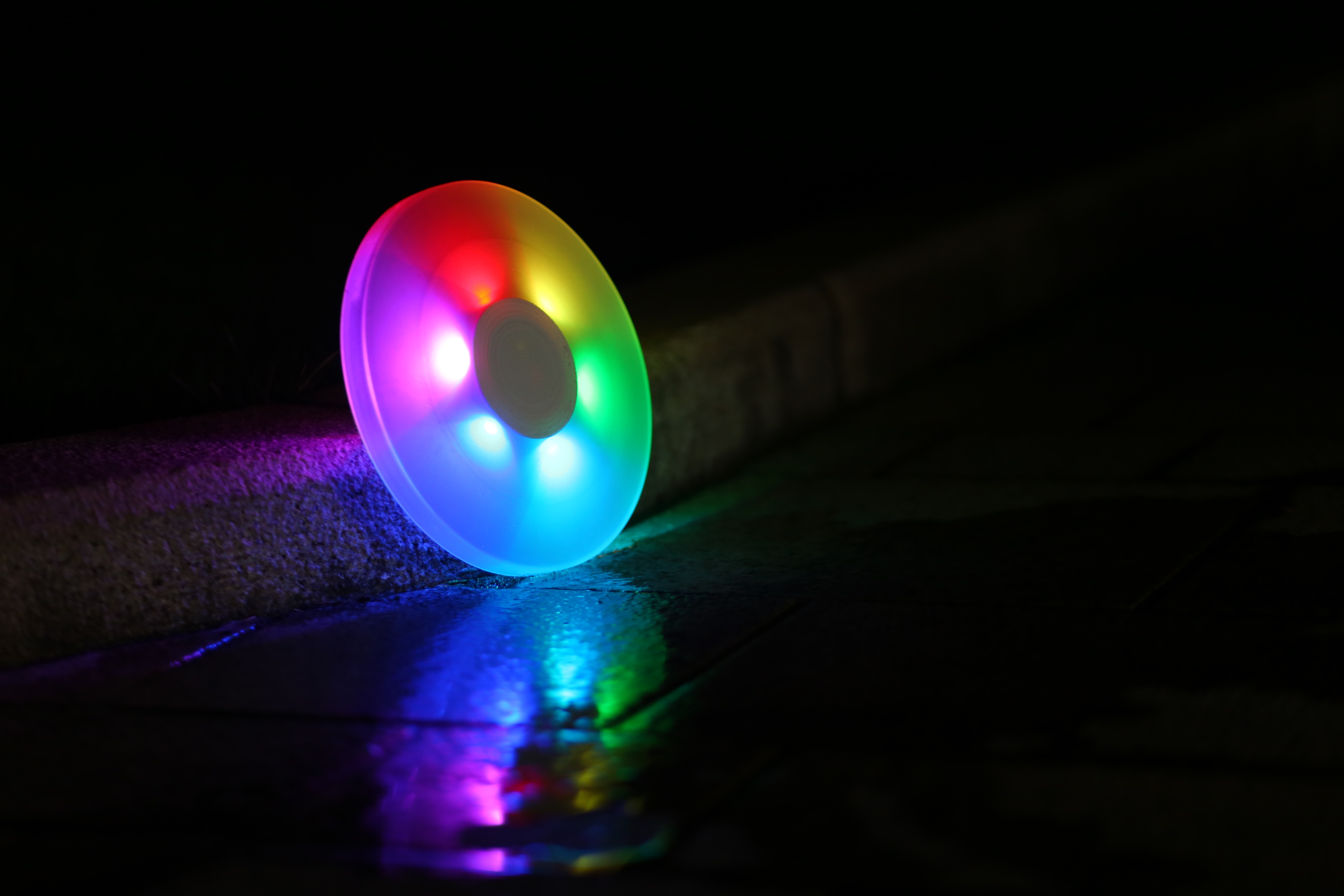 投げ方によって光る色が変わる新感覚フライングディスクです。これは、自身の投げるという動作に光の結果で反応が返ってくる、インタラクションを楽しむ製品になります。