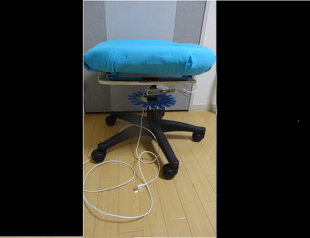 市販の体重計を改造し、いすと組み合わせて入力用コントローラーを作成しました。