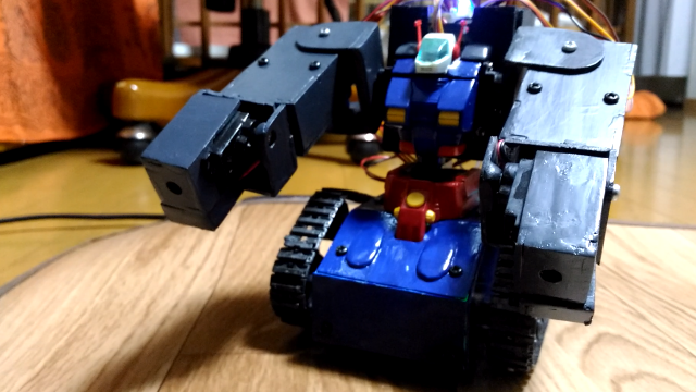 今回この作品を作ったのはプラモデルを動かして戦うというアニメにはまり、実際に自分も戦うことまではできなくてもプラモデルを動かして遊びたいと思ったことがはじまりです。最初はあまりマイコンや電子部品、プログラムの知識がない状態から作ったので完成までに数年かかってしまいましたがなんとか今年で完成しました。このロボットで使用したプラモデルは「HG ガンタンク」というキットを使用しました。なぜこのキットを選んだかというと「値段が安くかつ、ある程度大きい」と思ったからです。しかし実際にモーターやマイコン、バッテリーを載せるほど大きくなかったのでプラスチックやエポキシパテなどを材料にしてできるだけ作りやすく分解して修理しやすいようにかつ、できるだけ元になったキットのイメージから離れないように新しい部品を作っていきました。また無線リモコンもただ操縦するだけでなくロボットが起動するときにBGMが流れるようにもしてみました。
