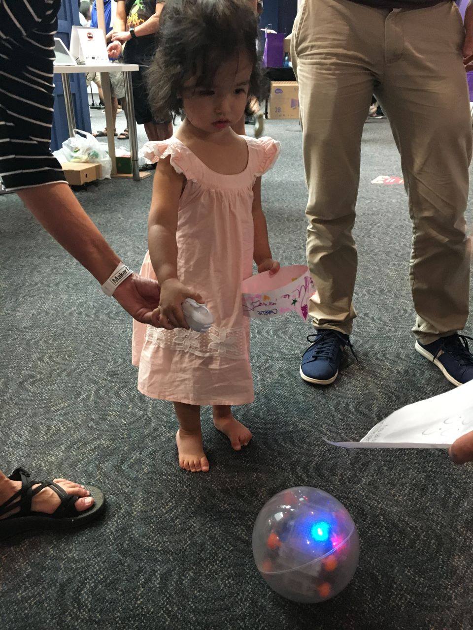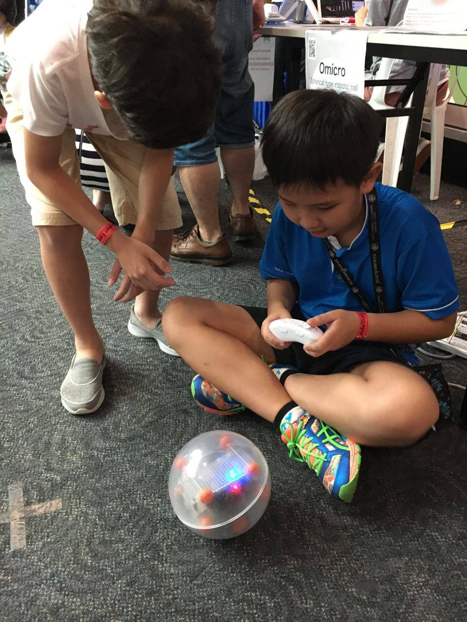 OmicroはスマートフォンやタブレットからBluetooth LEを使用してリモートで操作できるロボットボールです。堅牢なプラスチックボール型ロボットなので、子供やペットが触れても安全です。