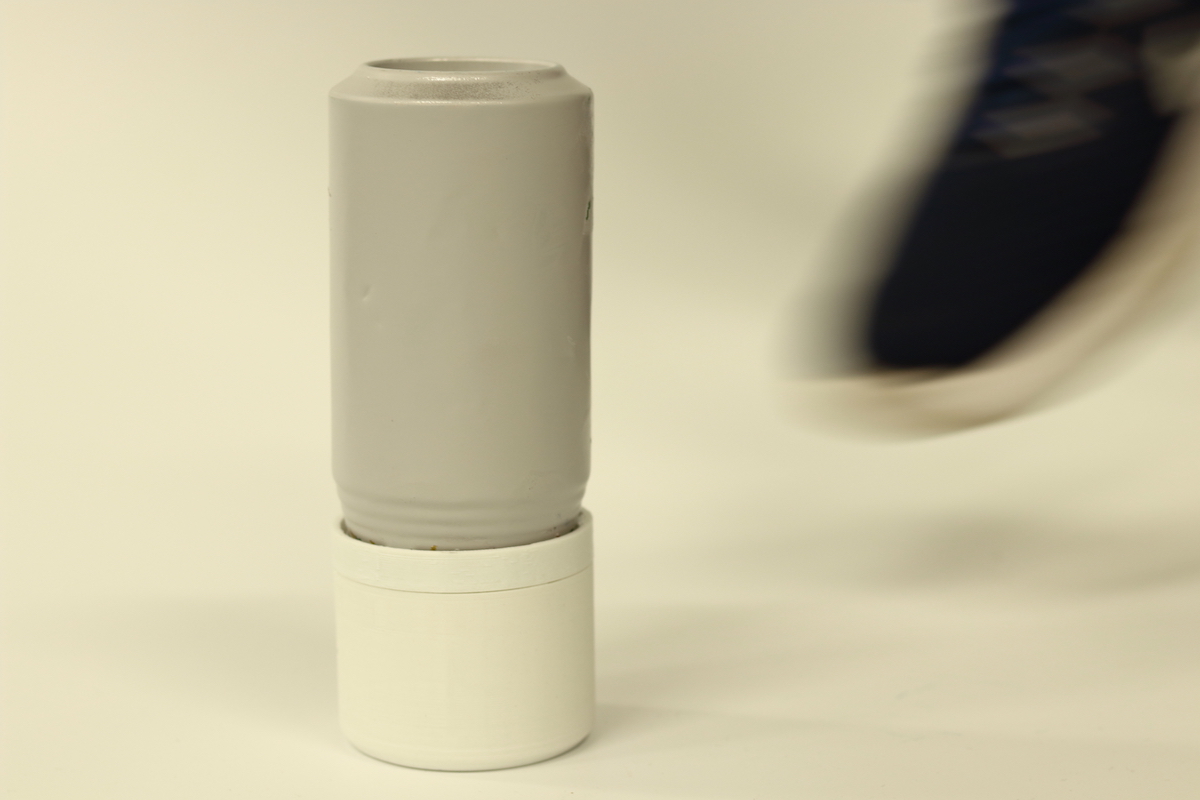 Kick Can \\"Head\\"では、缶を蹴る経験に着目し、缶に簡単にアタッチメントできるデバイスを開発しました。このデバイスにはArduinoと加速度センサが組み込まれ、缶の蹴りをセンシングして状況に応じた効果音で缶蹴りゲームを演出します。