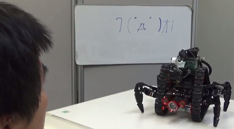 「ぺたた」には顔認識機能があります。いきなり「ぺたた」を見ても驚かないよう相手感情を読み取ったら脚の動きで感情表現をします。