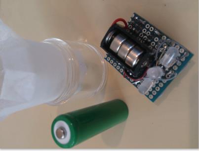 カラーLEDと6軸加速度計とマイコンが入っています。