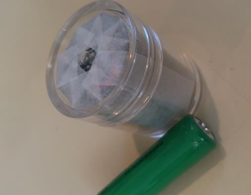 4cm四方の円柱型の透明アクリルケースの中に