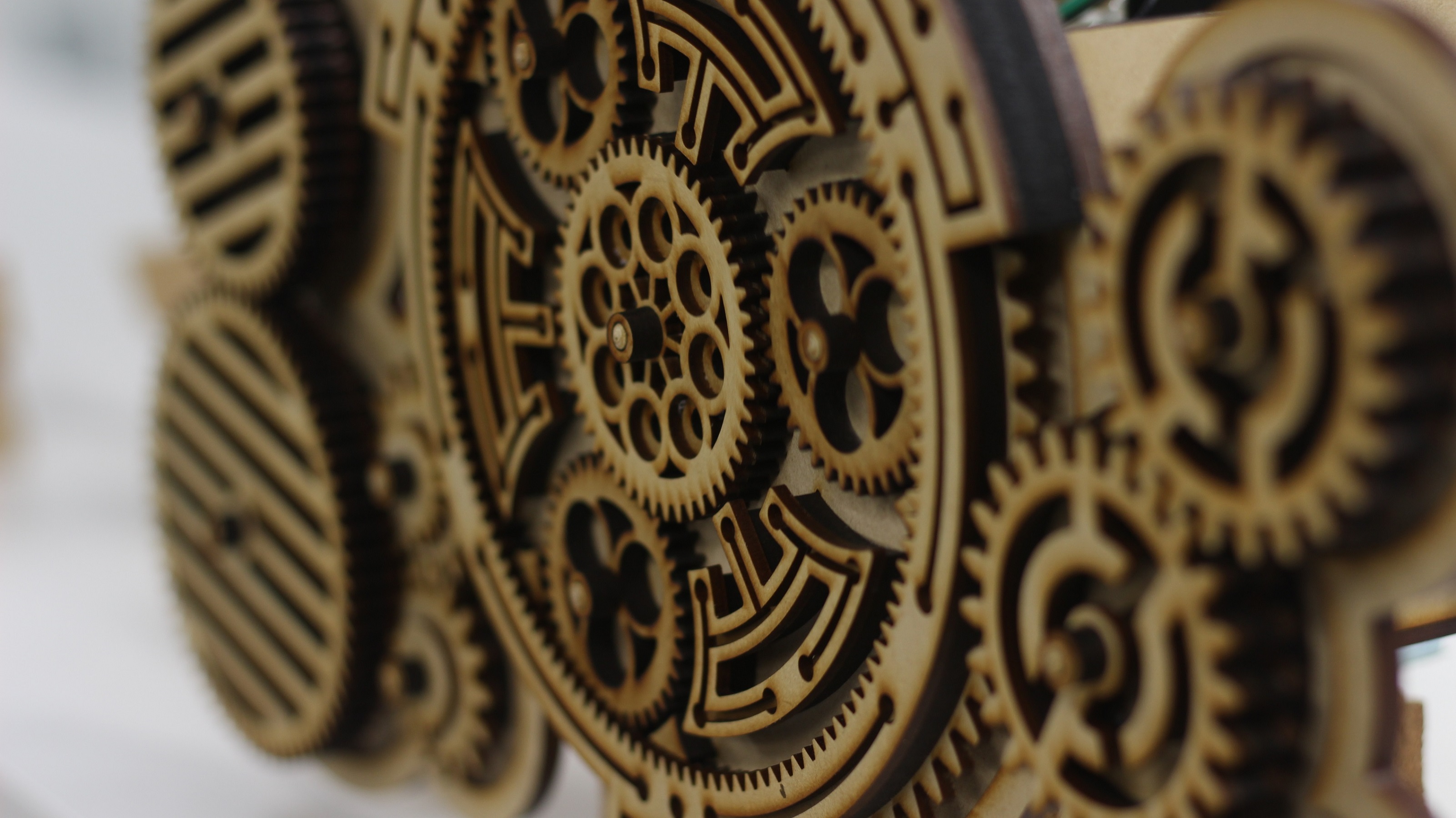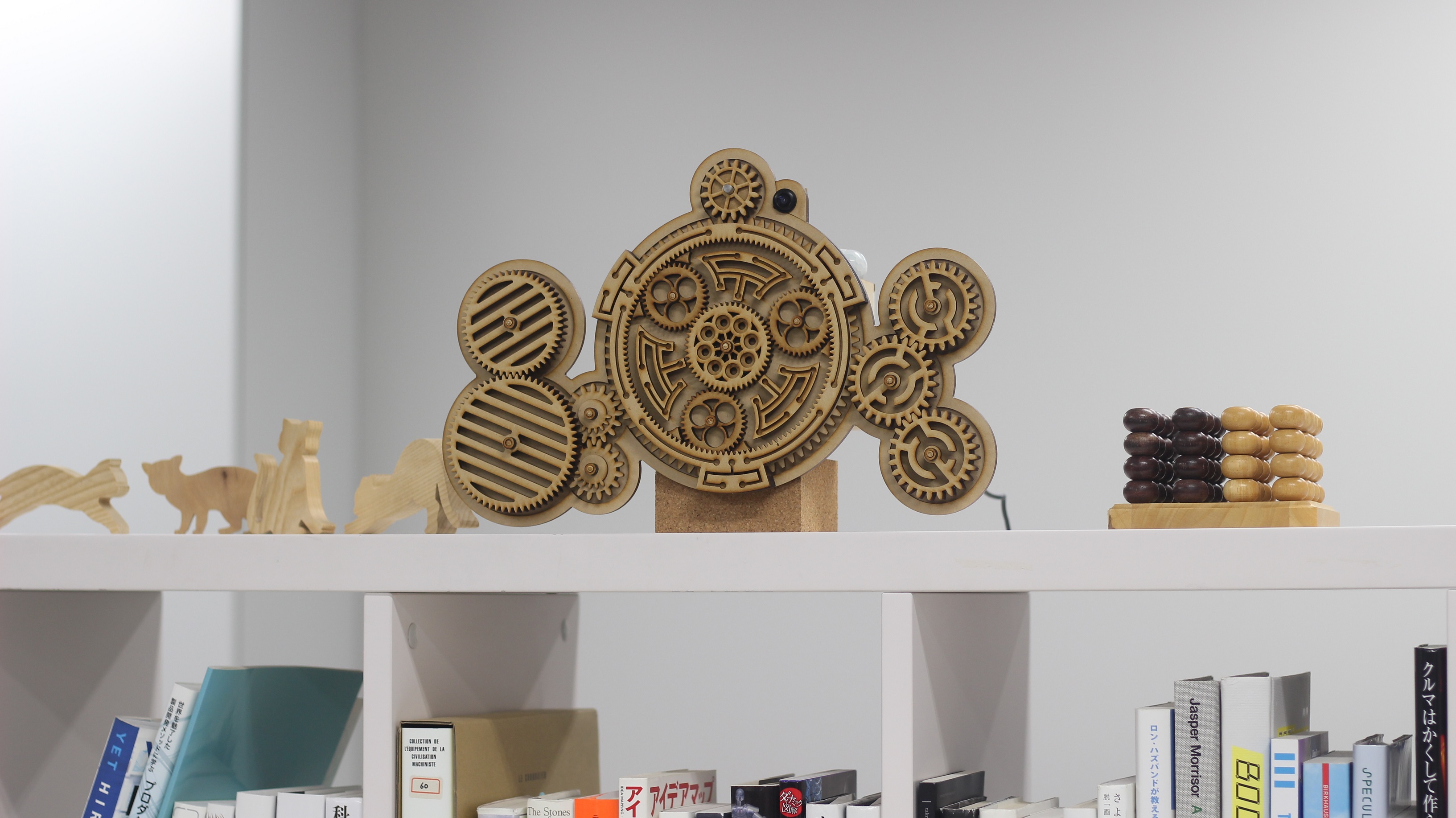 人を検知すると動き出し注意を引いて、じっくり見ると顔を検出してより力強く回りだず歯車を用いた作品です。 センサーやモーターはRaspberry Piで制御しています。