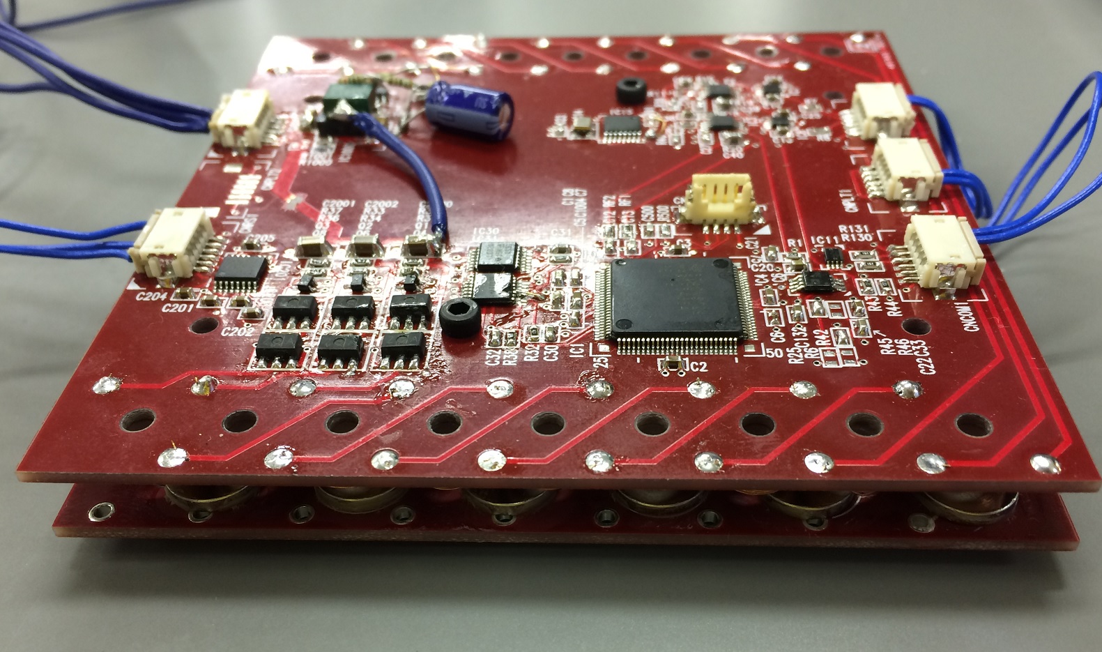 ・位置決め: プリント基板上のパターンの静電容量を検出することで位置をフィードバックしています。