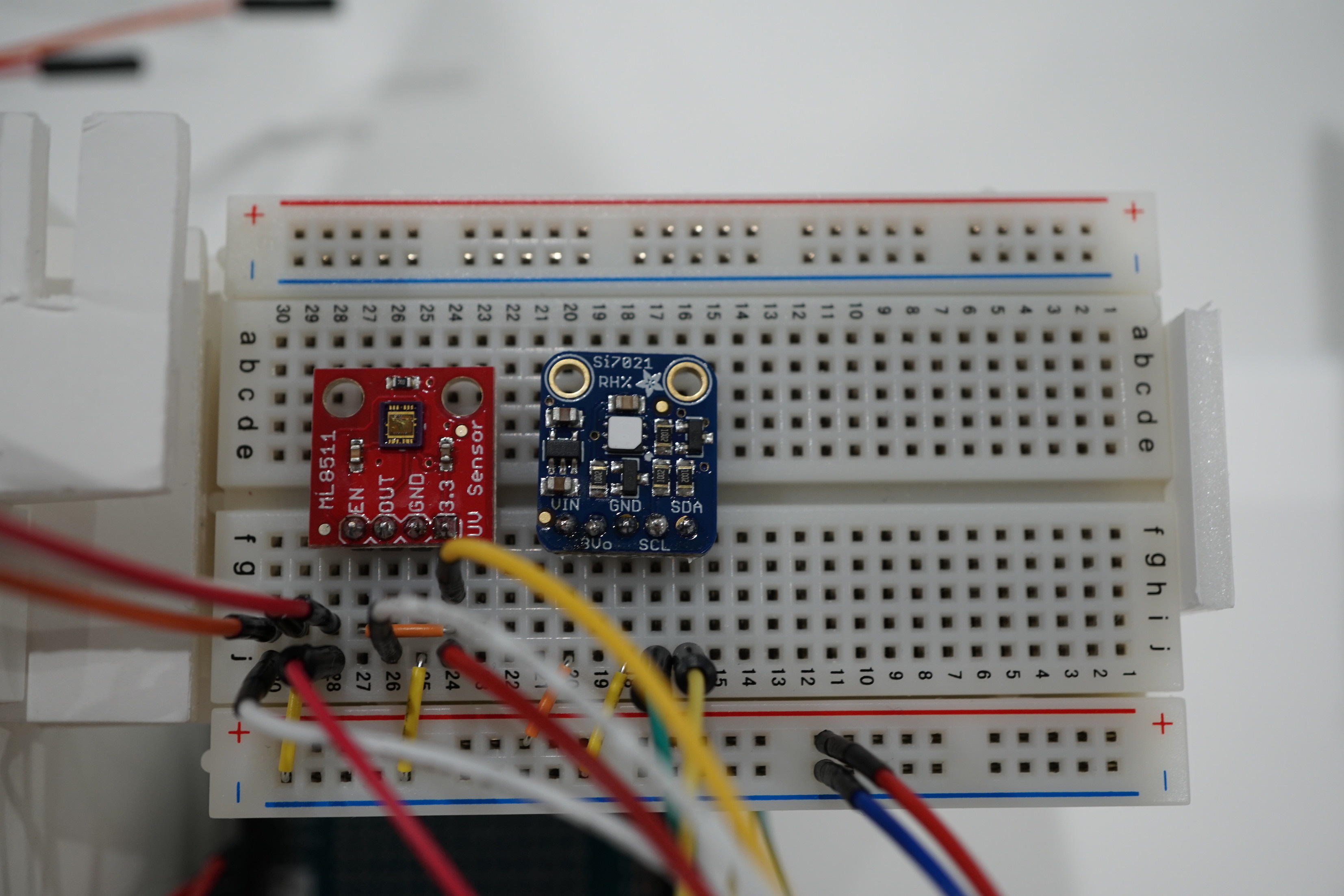 紫外線センサー、土壌湿度センサー、温湿度センサーにより値を取得します。