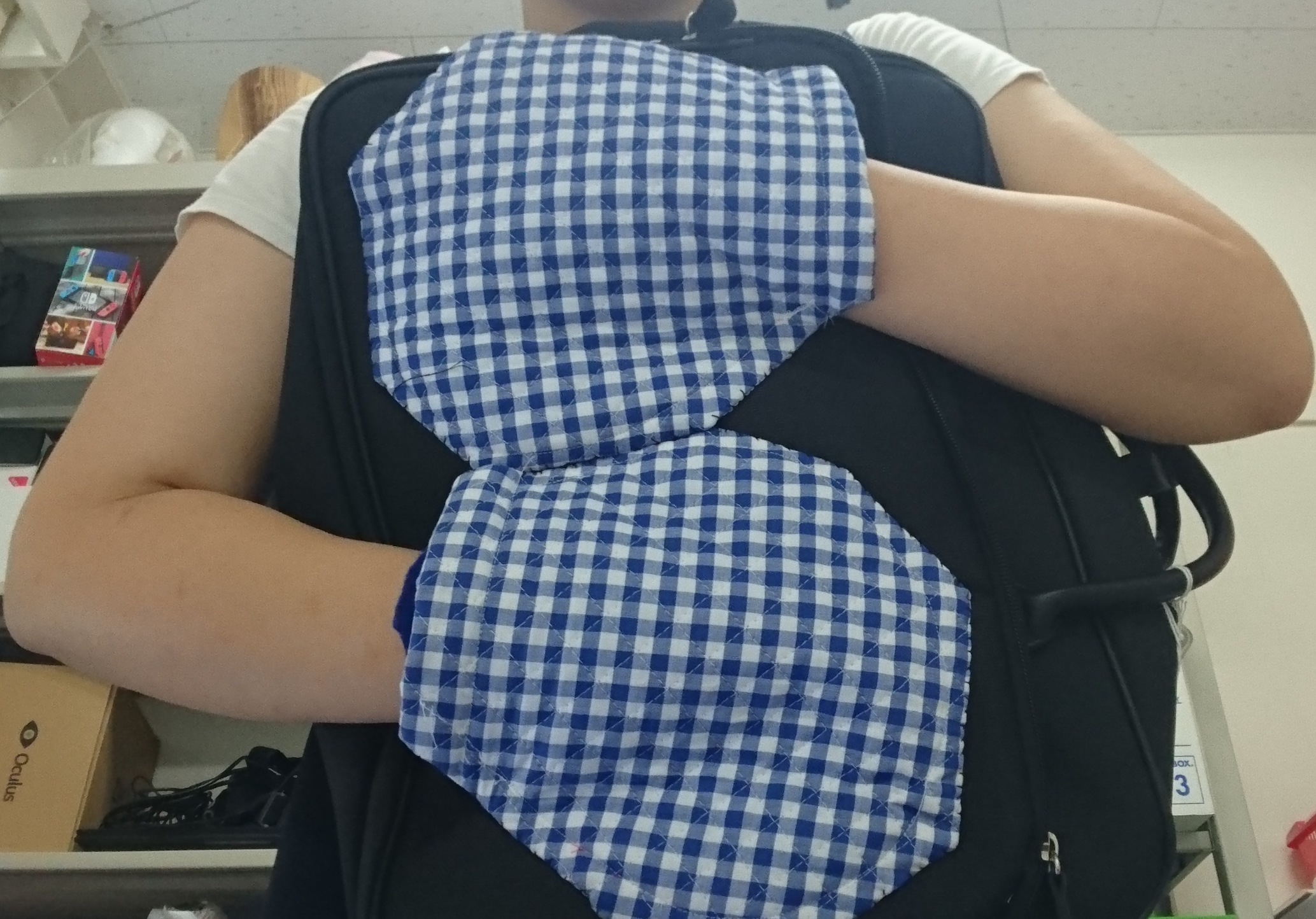 カバンタイプでは市販のビジネスバックに手袋のようなの大きさの布を取り付け、