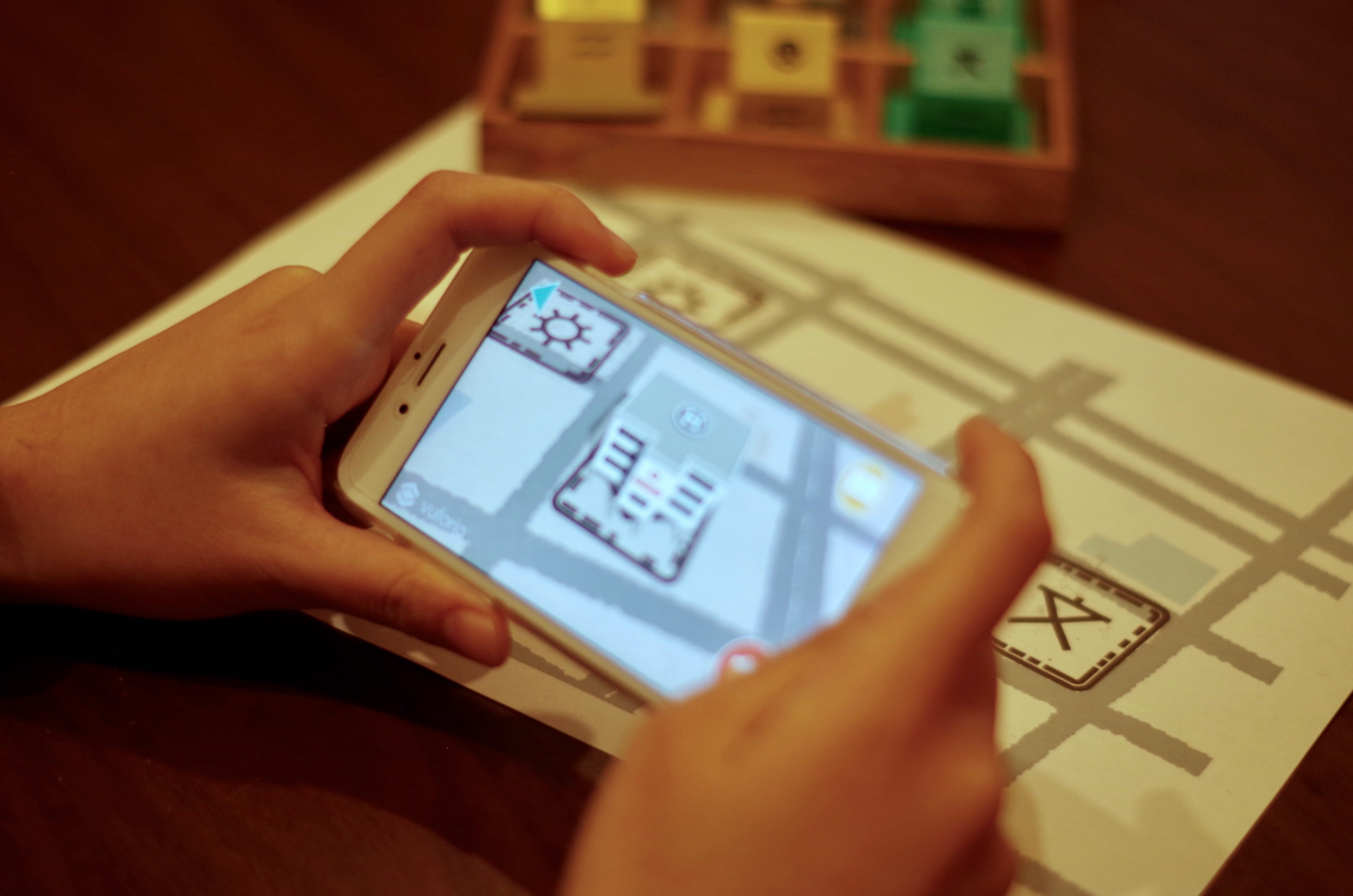 子供が実際に街を描き、そこに「専用ARスタンプ」を押します。