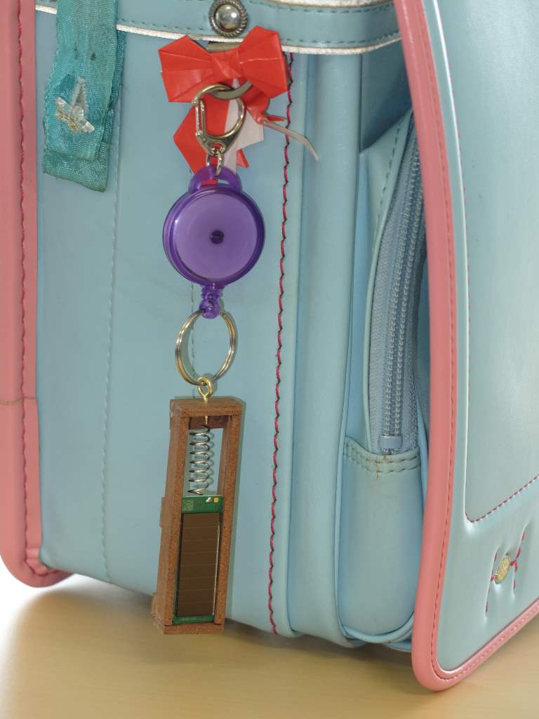 個人に配布するラリーの通行票は「学校のみんなで使える」を目標に、電池レスで動く、EnOceanモジュールを内蔵しています。この部品で無線通信を行い、個人の識別と、防犯通知を行います。