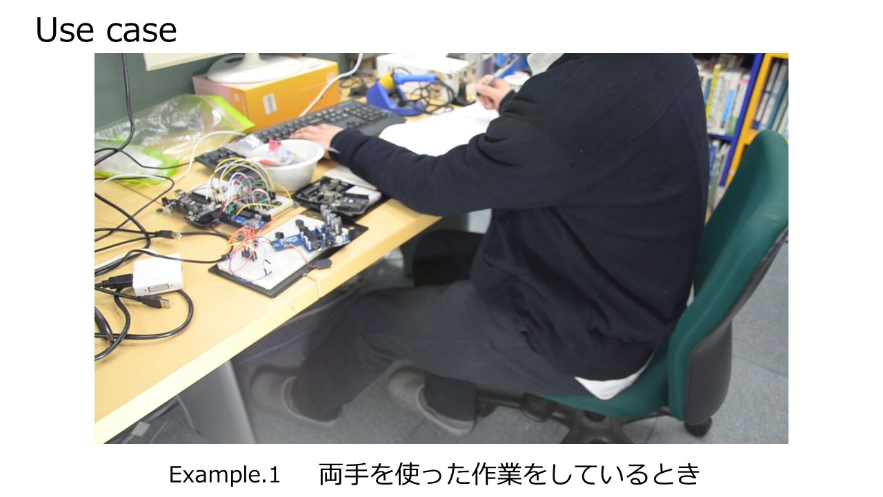 例えば、パソコンで資料を見ながら両手を使った作業をしているとき。
