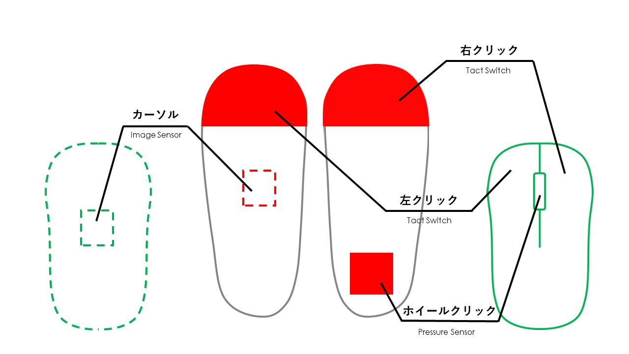 また、既存の製品でも足で使うポインティングデバイスはありますが、これらは床に設置しその上に足を置いて使うもの、有線のものとなっています。