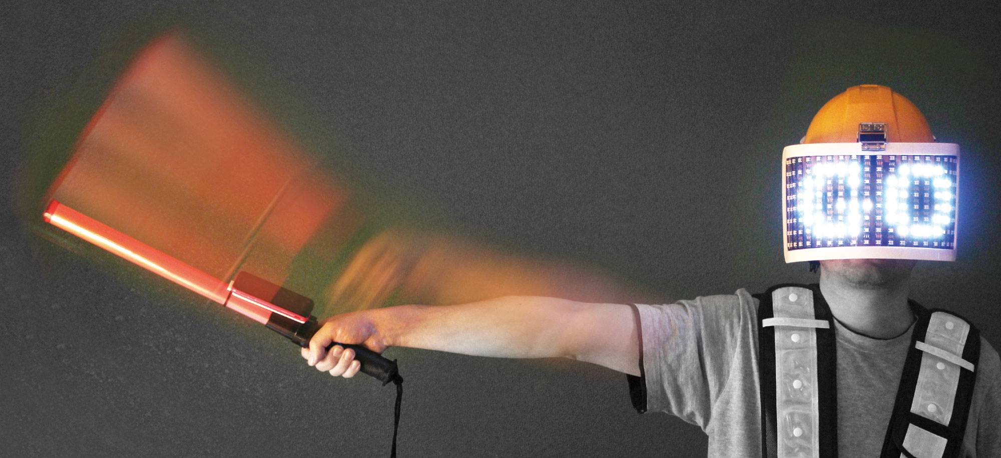 このSignVisorを装着した誘導員が、安全によりそして未来的に適切な情報提示を行います。