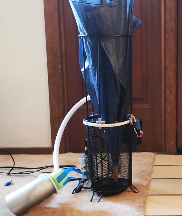 センサ情報から傘が乾いたと判断すれば、熱風も自動で停止する。