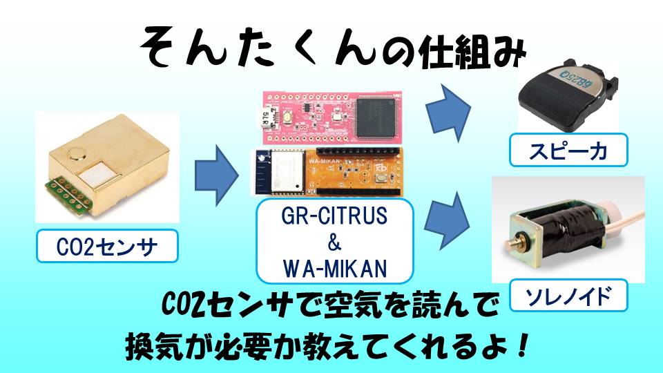 そんたくんはCO2濃度が上昇した時に換気をするように教えてくれます。CO2濃度が1000ppmを超えると集中力が低下すると言われており、CO2濃度を監視し換気を促すことで勉強や仕事の効率アップにつながります。また定期的な換気によりインフルエンザなどの感染症の抑制にもつながります。
