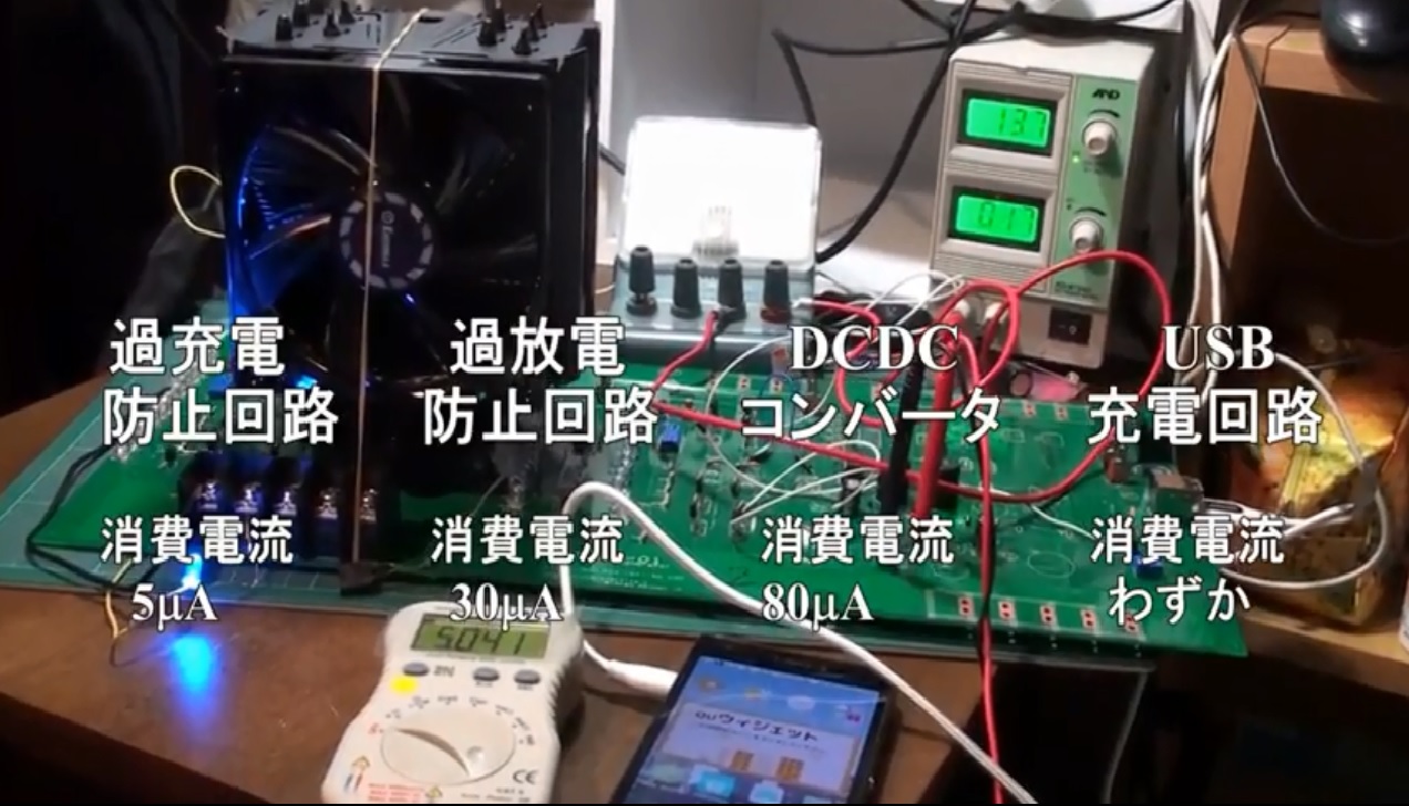 チャージコントローラはもっと低消費電流になれる、Chariot Lab.はそう考えます。現在開発中のチャージコントローラは、消費電流が現在市販品の8分の1程度の120uAと、非常に低消費電流です。しかもこの自己消費電流は、12Vを5Vに変換する部分も込みの数値です。図no