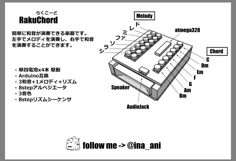 さらに、RakuChordはArduinoを基としており、プログラムを組むことができれば各ボタンの役割などを好きなように変更することができ、自分に合ったカスタマイズを行うこともできます。