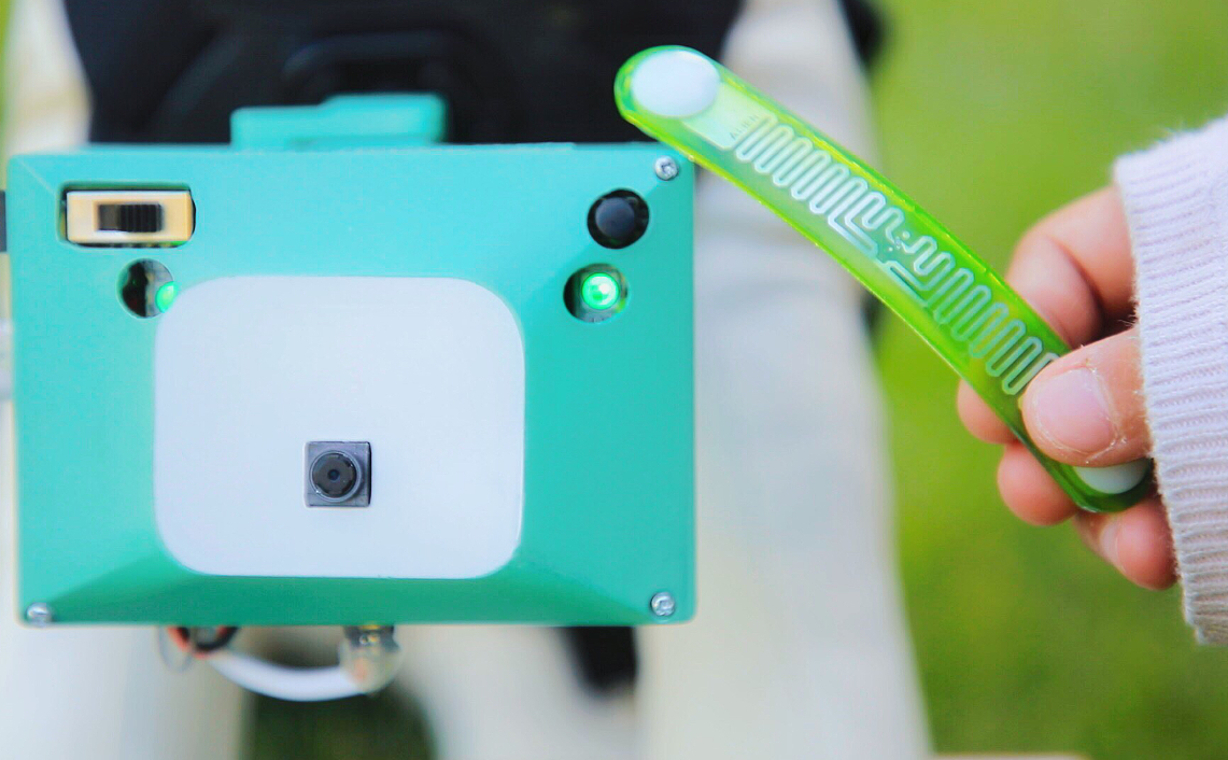 カメラ内のRFIDリーダーが専用タグに反応すると写真をぱしゃり。