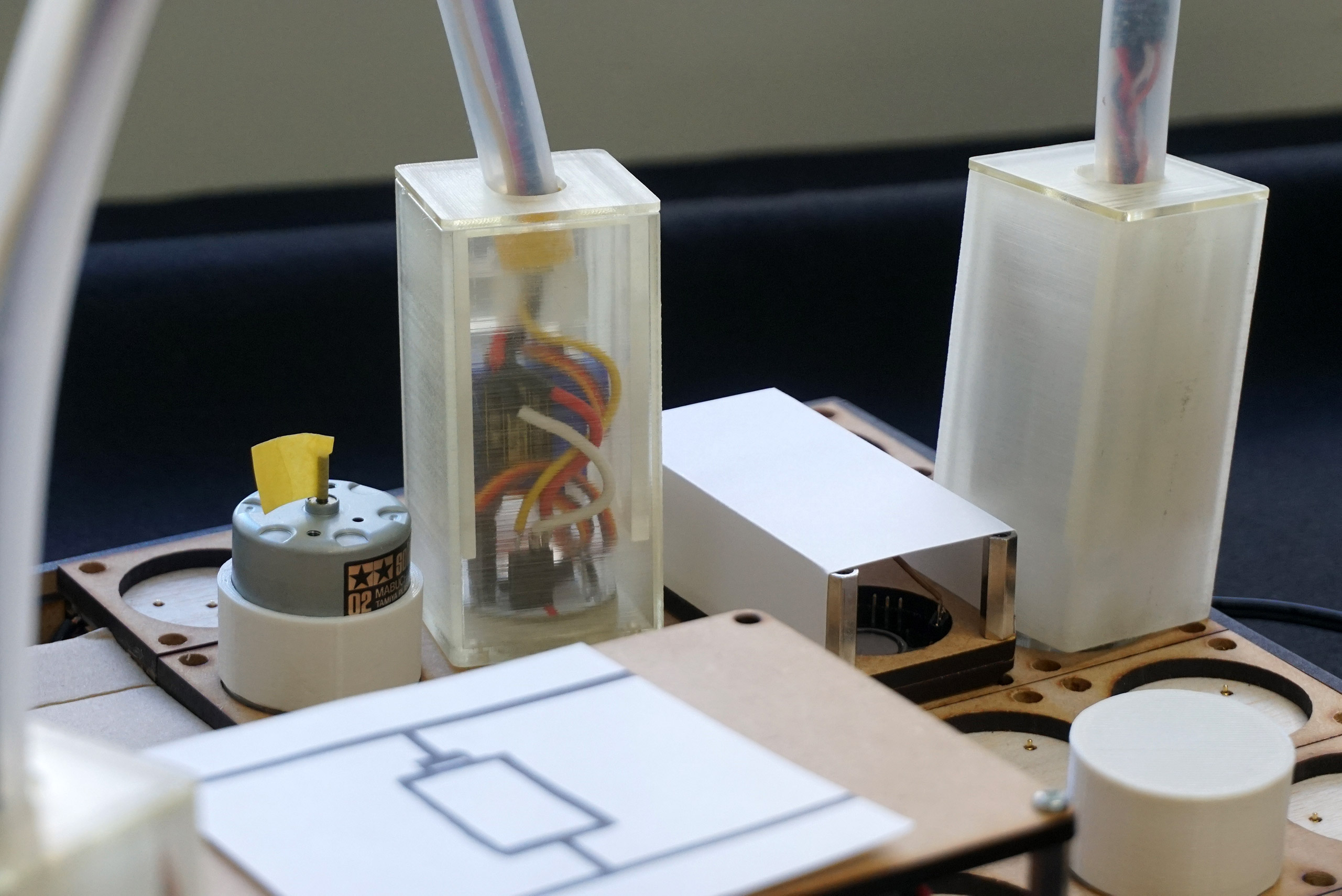 電圧や電流といった回路の様子を画面上のシミュレーション結果や測定器の数値ではなく現実の物体の挙動・様子に反映させることで,より馴染みやすい体験を提供します.回路にふれる体験を豊かなものにすることで,回路に対する興味を深めてもらったり,今後の勉強の足がかりにしてもらったりということを狙っています.