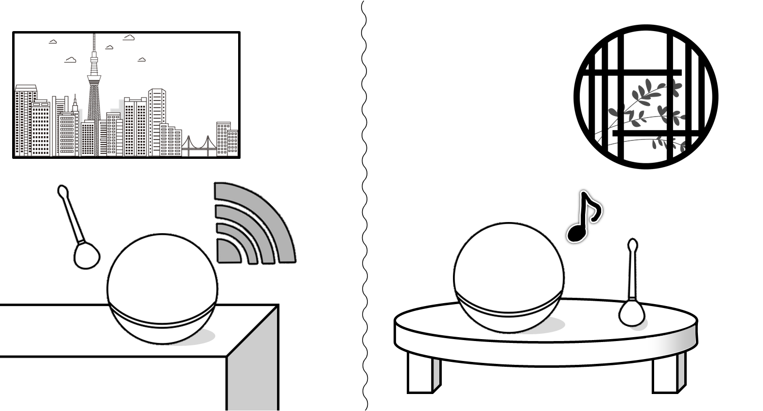 携帯電話やタブレットなど通信手段の発達によって連絡を取ることは容易になりました。しかし、おはようやおやすみの挨拶などは、一緒に住んでいれば当たり前のことでも、わざわざメールや電話をするほどのことではないので、疎かになりがちです。結音を使うと、そんな日常のコミュニケーションを気軽に行うことができ、おりんの澄みきった美しい音色で互いに心が癒されます。結音は、離れて暮らす大切な人との新しいコミュニケーションのカタチを提供します。